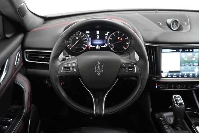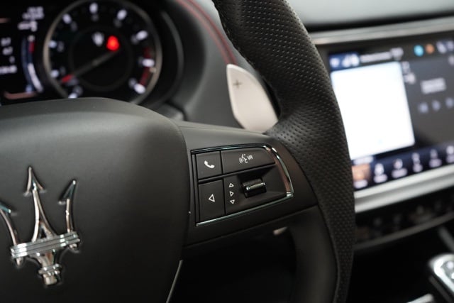 Inside, the Levante showcases full premium perforated leather, heated and ventilated 12-way sport seats, heated rear seating, a heated steering wheel, panoramic moonroof, and a harman/kardon 900W premium audio system. Adaptive suspension and staggered 20" Efesto Miron wheels provide both commanding road presence and refined ride quality.