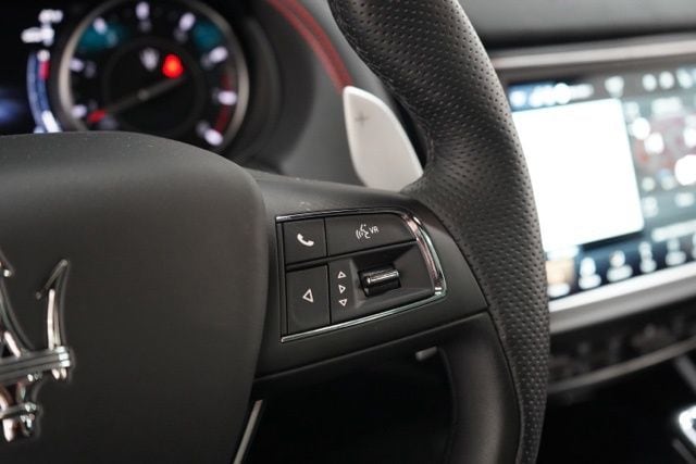 Technology highlights include Maserati Intelligent Assistant, navigation, Apple CarPlay & Android Auto, surround parking camera, and Maserati Connect emergency communication services.