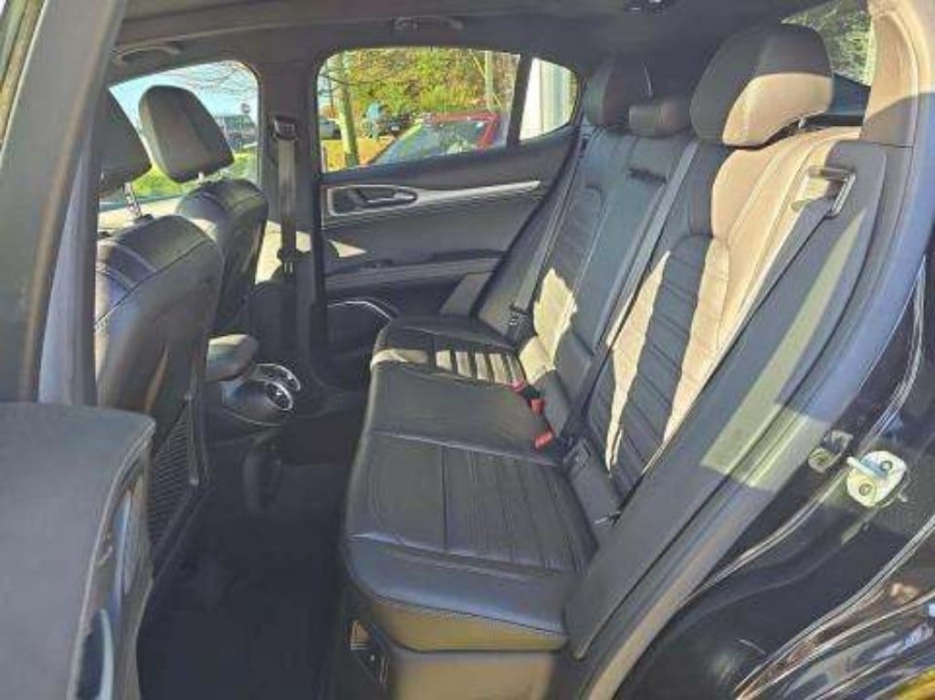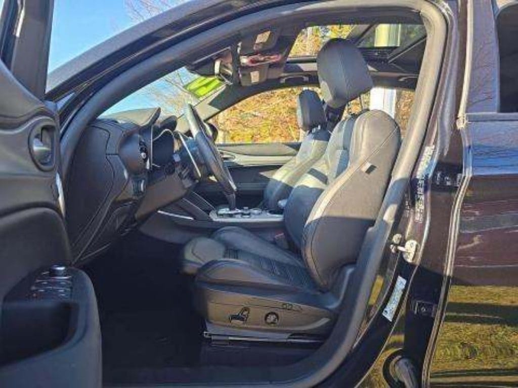 This Stelvio is well equipped with Active Blind Spot Package (Active Blind Spot Assist and Auto-Dimming Exterior Mirrors), Nero Edizione Sport (Wheels: 20" x 8.5" Miron Black Sport Aluminum, Dark Exhaust Tips, Dark Miron Badging, Dark Miron Exterior Mirror Caps, Dark Miron V Scudetto Grille, Miron Black Rear Valence Panel, and Monochromatic Center Wheel Caps), Quick Order Package 22S Sport (Aluminum Interior Trim, Aluminum Steering Column Mounted Paddle Shifters, Black Headliner, Bright Aluminum Pedals, Colored Brake Calipers, Gloss Black Roof Rails, Gloss Black Window Surround Moldings, Perforated Leather Shift Knob, Power 8-Way Adjustable Driver Seat, Power Adjust 8-Way Front Passenger Seat, Power Adjustable Bolster, Sport Leather Seats, Sport Leather-Wrapped Steering Wheel, and Sport Tuned Front Dampers), Ti Sport Performance Package (Active Suspension and Limited Slip Differential Rear Axle), 8.8" Touchscreen Display, Apple CarPlay/Android Auto, Dual-Pane Sunroof, Gloss Black Shark Fin Antenna, GPS Navigation, Hands Free Power Liftgate, harman/kardon Premium Audio, Heated front seats, Leather Seats, Power Liftgate, Radio: AM/FM/HD 8.8" w/Navigation, 3.73 Axle Ratio, 4-Wheel Disc Brakes, 8 Speakers, ABS brakes, Air Conditioning, Alloy wheels, AM/FM radio: SiriusXM, Auto-dimming Rear-View mirror, Automatic temperature control, Brake assist, Bumpers: body-color, Compass, Delay-off headlights, Driver door bin, Driver vanity mirror, Dual front impact airbags, Dual front side impact airbags, Electronic Stability Control, Four wheel independent suspension, Front anti-roll bar, Front Bucket Seats, Front Center Armrest, Front dual zone A/C, Front reading lights, Fully automatic headlights, Garage door transmitter, Genuine wood console insert, Genuine wood dashboard insert, Genuine wood door panel insert, Gloss Black Calipers w/White Script, HD Radio, Heated door mirrors, Heated steering wheel, High intensity discharge headlights: Bi-Xenon, Illuminated entry, Knee airbag, Leather Dash & Upper Doors, Leather Shift Knob, Leather steering wheel, Low tire pressure warning, Manufacturer's Statement of Origin, Memory seat, Occupant sensing airbag, Outside temperature display, Overhead airbag, Overhead console, Panic alarm, ParkView Rear Back-Up Camera, Passenger door bin, Passenger vanity mirror, Power door mirrors, Power driver seat, Power passenger seat, Power steering, Power windows, Radio data system, Radio: AM/FM Bluetooth 8.8", Rain sensing wipers, Rear anti-roll bar, Rear audio controls, Rear fog lights, Rear reading lights, Rear seat center armrest, Rear window defroster, Rear window wiper, Remote keyless entry, Security system, Speed control, Speed-sensing steering, Speed-Sensitive Wipers, Split folding rear seat, Spoiler, Steering wheel mounted audio controls, Tachometer, Telescoping steering wheel, Tilt steering wheel, Traction control, Trip computer, Turn signal indicator mirrors, Variably intermittent wipers, Wheels: 19" x 8.0" Y-Spoke Aluminum, and Wireless Charging Pad.