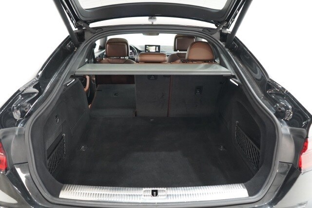 This A5 is well equipped with quattro, Nougat Brown w/Leather Seating Surfaces, Leather Seating Surfaces, Power Liftgate, Power moonroof, 10 Speakers, 4-Wheel Disc Brakes, ABS brakes, Air Conditioning, Alloy wheels, AM/FM radio, Anti-whiplash front head restraints, Audi smartphone interface (Apple CarPlay/Android Auto), Auto-dimming Rear-View mirror, Automatic temperature control, Brake assist, Bumpers: body-color, Compass, Delay-off headlights, Driver door bin, Driver vanity mirror, Dual front impact airbags, Dual front side impact airbags, Electronic Stability Control, Exterior Parking Camera Rear, Four wheel independent suspension, Front anti-roll bar, Front Bucket Seats, Front Center Armrest, Front dual zone A/C, Front fog lights, Front reading lights, Garage door transmitter: HomeLink, Heated door mirrors, High intensity discharge headlights: Bi-xenon, Illuminated entry, Knee airbag, Leather Shift Knob, Leather steering wheel, Occupant sensing airbag, Outside temperature display, Overhead airbag, Overhead console, Panic alarm, Passenger door bin, Passenger vanity mirror, Power adjustable front head restraints, Power door mirrors, Power driver seat, Power passenger seat, Power steering, Power windows, Radio data system, Radio: Audi Sound System, Rain sensing wipers, Rear air conditioning, Rear anti-roll bar, Rear reading lights, Rear seat center armrest, Rear window defroster, Remote keyless entry, Speed control, Speed-sensing steering, Speed-Sensitive Wipers, Split folding rear seat, Steering wheel mounted audio controls, Tachometer, Telescoping steering wheel, Tilt steering wheel, Traction control, Trip computer, Turn signal indicator mirrors, Variably intermittent wipers, and Wheels: 18" x 8.5" 10-Spoke-Dynamic-Design.