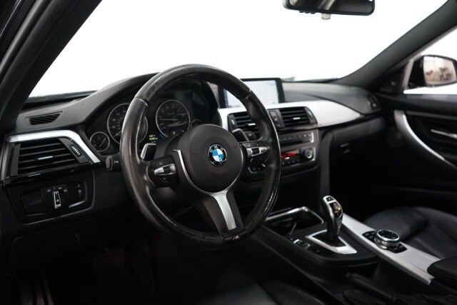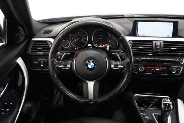 This 3 Series is well equipped with Cold Weather Package (Heated Front Seats, Heated Rear Seats, Heated Steering Wheel, and Retractable Headlight Washers), Driver Assistance Package (Park Distance Control and Rear-View Camera), M Sport (Aerodynamic Kit, Aluminum Hexagon Interior Trim, Anthracite Headliner, Delete Front Fog Lights, Delete Sport Leather Steering Wheel, Estoril Blue Matte Highlight Trim Finishers, M Steering Wheel, Shadowline Exterior Trim, Sport Seats, Wheels: 18 x 8 Star-Spoke (Style 400M), and Without Lines Designation Outside), M Sport Package, Premium Package (Comfort Access Keyless Entry, Dakota Leather Upholstery, Lumbar Support, and Satellite Radio), Technology Package (Advanced Real-Time Traffic Information, BMW Online & BMW Apps, Enhanced USB & Bluetooth w/Smartphone Integration, Head-Up Display, Instrument Cluster w/Extended Contents, Navigation System w/Touchpad, and Remote Services), Sport Line, AWD, 4-Wheel Disc Brakes, 9 Speakers, ABS brakes, Air Conditioning, Alloy wheels, AM/FM radio, Anti-whiplash front head restraints, Auto-dimming door mirrors, Auto-dimming Rear-View mirror, Automatic temperature control, Brake assist, Bumpers: body-color, CD player, Delay-off headlights, Driver door bin, Driver vanity mirror, Dual front impact airbags, Dual front side impact airbags, Electronic Stability Control, Four wheel independent suspension, Front anti-roll bar, Front Bucket Seats, Front Center Armrest, Front dual zone A/C, Front fog lights, Front reading lights, Fully automatic headlights, Garage door transmitter, Genuine wood console insert, Genuine wood dashboard insert, Genuine wood door panel insert, Hands-Free Bluetooth & USB Audio Connection, harman/kardon Surround Sound System, Heated door mirrors, Hi-Fi Sound System, High intensity discharge headlights: Bi-xenon, Illuminated entry, Knee airbag, Leather Shift Knob, Leather steering wheel, Low tire pressure warning, Luxury Line Aesthetic Elements, Memory seat, Occupant sensing airbag, Outside temperature display, Overhead airbag, Panic alarm, Passenger door bin, Passenger vanity mirror, Power door mirrors, Power driver seat, Power moonroof, Power passenger seat, Power steering, Power windows, Radio data system, Radio: Anti-Theft AM/FM/HD Stereo CD/MP3 Player, Rain sensing wipers, Rear air conditioning, Rear anti-roll bar, Rear reading lights, Rear seat center armrest, Rear window defroster, Remote keyless entry, Security system, SensaTec Leatherette Upholstery, Speed control, Speed-sensing steering, Speed-Sensitive Wipers, Split folding rear seat, Sport steering wheel, Steering wheel mounted audio controls, Tachometer, Telescoping steering wheel, Tilt steering wheel, Traction control, Trip computer, Turn signal indicator mirrors, Variably intermittent wipers, and Wheels: 18 x 8 Light Alloy Star-Spoke (Style 396).