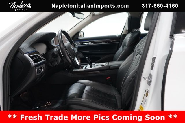 This 7 Series is well equipped with Cold Weather Package (Front & Rear Heated Seats and Heated Front Seats Armrests & Steering Wheel), Premium Package (Head-Up Display, Perforated Nappa Leather Upholstery, and Power Rear Sunshade & Rear Side Window Shades), AWD, Black Leather, 16 Speakers, 4-Wheel Disc Brakes, ABS brakes, Adaptive suspension, Air Conditioning, Alloy wheels, AM/FM radio: SiriusXM, Anti-whiplash front head restraints, Apple CarPlay Compatibility, Auto High-beam Headlights, Auto tilt-away steering wheel, Auto-dimming door mirrors, Auto-dimming Rear-View mirror, Auto-leveling suspension, Automatic temperature control, Brake assist, Bumpers: body-color, CD player, Dakota Leather Upholstery, Delay-off headlights, Door auto-latch, Driver door bin, Driver vanity mirror, Dual front impact airbags, Dual front side impact airbags, Electronic Stability Control, Emergency communication system: BMW Assist eCall, Four wheel independent suspension, Front anti-roll bar, Front Bucket Seats, Front Center Armrest, Front dual zone A/C, Front reading lights, Fully automatic headlights, Garage door transmitter, Genuine wood console insert, Genuine wood dashboard insert, Genuine wood door panel insert, harman/kardon Surround Sound System, harman/kardon® Speakers, Head restraints memory, Heated door mirrors, Heated Front Seats, Heated front seats, Heated steering wheel, Illuminated entry, Knee airbag, Leather Shift Knob, Leather steering wheel, Low tire pressure warning, Memory seat, Multi-Contour Seats, Navigation System, Occupant sensing airbag, Outside temperature display, Overhead airbag, Overhead console, Panic alarm, Passenger door bin, Passenger vanity mirror, Power adjustable front head restraints, Power door mirrors, Power driver seat, Power moonroof, Power passenger seat, Power steering, Power windows, Radio data system, Radio: AM/FM/HD w/In-Dash Single CD, Rain sensing wipers, Rear air conditioning, Rear anti-roll bar, Rear dual zone A/C, Rear reading lights, Rear seat center armrest, Rear Window Blind, Rear window defroster, Remote keyless entry, Security system, SiriusXM Satellite Radio, Speed control, Speed-sensing steering, Speed-Sensitive Wipers, Sport steering wheel, Steering wheel memory, Steering wheel mounted audio controls, Telescoping steering wheel, Tilt steering wheel, Traction control, Trip computer, Variably intermittent wipers, Weather band radio, and Wheels: 18" x 8.0" V-Spoke Style 642.