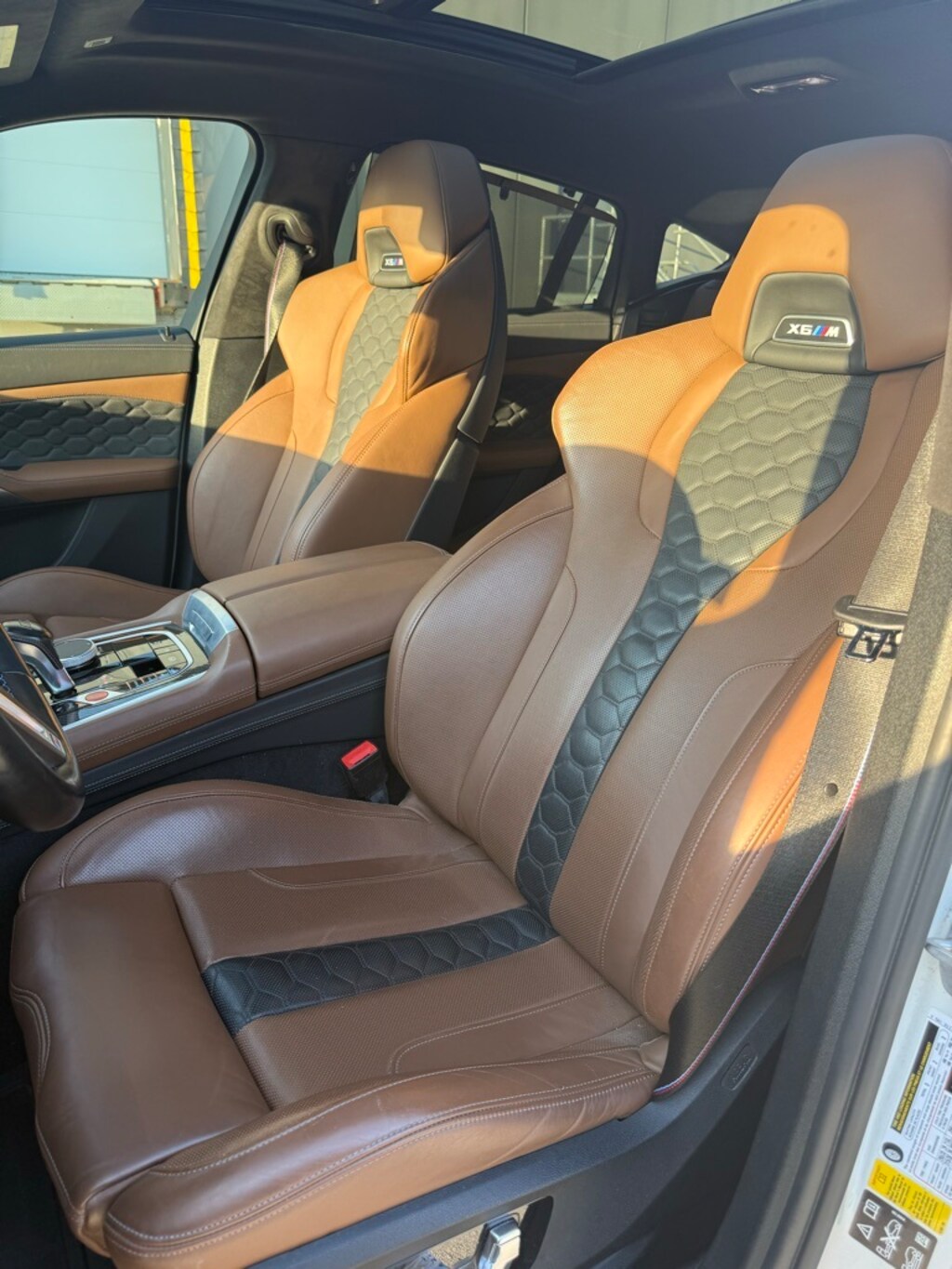 This X6 M is well equipped with Competition Package (M Sport Exhaust System, Extended Shadowline Trim, Full Leather Merino/Alcantara Seat Upholstery, M Seat Belts, M Shadowline Lights, and Wheels: 21" x 10.5" Fr & 22" x 11.5" Rr Bi-Color), Competition Package (7MA), Connected Package Pro, Driving Assistance Professional Package (Extended Traffic Jam Assistant and Active Driving Assistant Pro), Executive Package (Soft-Close Automatic Doors, Front & Rear Heated Seats, Front Massaging Seats, Front Ventilated Seats, Heated & Cooled Cupholders, Rear Manual Side Window Shades, and Remote Engine Start), M Competition Package, Apple CarPlay & Android Auto Compatibility, harman/kardon Surround Sound System, Navigation System, Power Liftgate, Power moonroof, 16 Speakers, 3.154 Axle Ratio, 4-Wheel Disc Brakes, ABS brakes, Adaptive suspension, Air Conditioning, Alloy wheels, AM/FM radio: SiriusXM with 360L, AM/FM Stereo, Auto High-beam Headlights, Auto tilt-away steering wheel, Auto-dimming door mirrors, Auto-dimming Rear-View mirror, Auto-leveling suspension, Automatic temperature control, BMW Assist eCall, BMW TeleServices, Brake assist, Bumpers: body-color, Compass, ConnectedDrive Services, Delay-off headlights, Drive Recorder, Driver door bin, Driver vanity mirror, Dual front impact airbags, Dual front side impact airbags, Electronic Stability Control, Emergency communication system: BMW Assist eCall, Enhanced USB & Bluetooth, Extended Merino Leather Seat Upholstery, Exterior Parking Camera Rear, Four wheel independent suspension, Front anti-roll bar, Front Bucket Seats, Front Center Armrest, Front dual zone A/C, Front reading lights, Fully automatic headlights, Garage door transmitter, harman/kardon® Speakers, Headlight cleaning, Heads-Up Display, Heated door mirrors, Heated Front Seats, Heated front seats, Heated steering wheel, Illuminated entry, Leather steering wheel, Live Cockpit Pro w/Navigation, Low tire pressure warning, Lumbar Support, M Compound Brakes w/Red Calipers, Memory seat, Multi-Function Seats w/Lumbar Support, Occupant sensing airbag, Outside temperature display, Overhead airbag, Overhead console, Panic alarm, Passenger door bin, Passenger vanity mirror, Power door mirrors, Power driver seat, Power Front Seats, Power passenger seat, Power steering, Power windows, Radio data system, Rain sensing wipers, Rear air conditioning, Rear anti-roll bar, Rear dual zone A/C, Rear reading lights, Rear seat center armrest, Rear window defroster, Remote keyless entry, Security system, SiriusXM Satellite Radio w/1 Year Subscription, Speed control, Speed-sensing steering, Speed-Sensitive Wipers, Split folding rear seat, Spoiler, Sport steering wheel, Steering wheel memory, Steering wheel mounted A/C controls, Steering wheel mounted audio controls, Tachometer, Telescoping steering wheel, Tilt steering wheel, Traction control, Trip computer, Turn signal indicator mirrors, Variably intermittent wipers, Wheels: 21" x 10.5" Fr & 21" x 11.5" Rr Bi-Color, Wheels: 21" x 10.5" Fr & 22" x 11.5" Rr, WiFi Hotspot, and Wireless Charging.