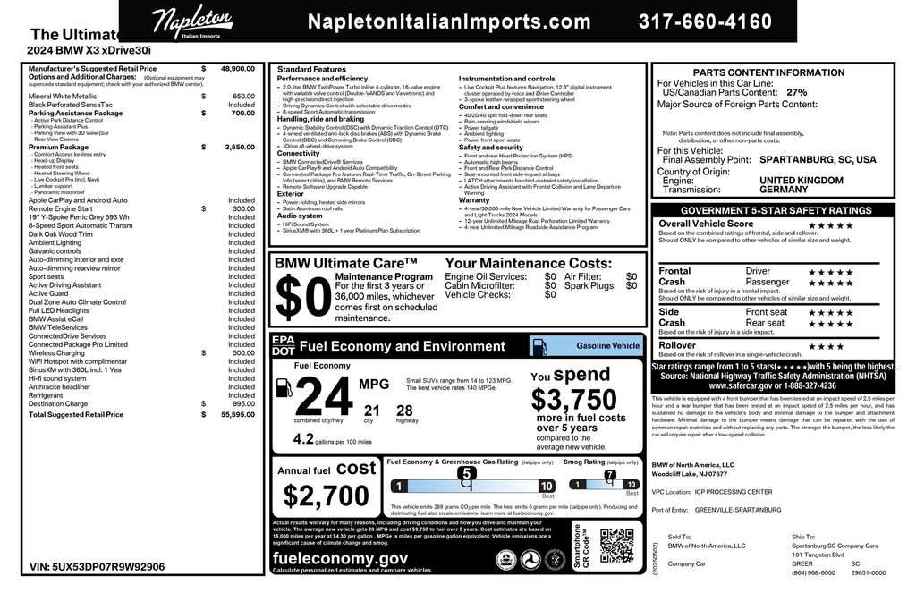 This exceptional 2024 BMW X3 xDrive30i is the perfect blend of style, performance, and technology. Experience the ultimate in luxury and capability by scheduling a test drive today. We're confident you'll be impressed by the exceptional value and driving experience this vehicle has to offer.