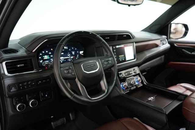 This Yukon is well equipped with Advanced Security Package (Glass Breakage Sensor, Theft-Deterrent Alarm System, Vehicle Inclination Sensor, and Vehicle Interior Movement Sensor), Advanced Technology Package (Enhanced Automatic Parking Assist, Inside Rearview Auto-Dimming Rear Camera Mirror, Rear Camera Mirror Washer, and Reverse Automatic Braking), License Plate Front Mounting Package, Max Trailering Package (Extra Capacity Cooling System), Preferred Equipment Group 5SB (15" Diagonal Multi-Color Head-Up Display, 16-Way Power Seat Adjusters, 2 Presets For Outside Rearview Mirrors, 3 Years of GMC Connected Services, 3 Years of OnStar Safety & Security, 3rd Row 60/40 Power-Folding Split-Bench Seat, Adaptive Cruise Control, Bose Performance Series Sound System w/18 Speakers, Bright Front & Rear Door Sill Plates, Chrome Door Handles w/Body-Color Strip, Dual Exhaust System, Dual-Pane Panoramic Power Sunroof, Enhanced Automatic Emergency Braking, Floor Console, Hands-Free Power Programmable Rear Liftgate, HD Surround Vision, Heated & Ventilated Driver & Front Passenger Seats, Heated 2nd Row Outboard Position Seats, Heated Driver & Front Passenger Seats, Heated Steering Wheel, Hill Descent Control, Leather-Wrapped Steering Wheel, Outside Heated Power-Adjustable Mirrors, Power Release 2nd Row Bucket Seats, Power Tilt & Telescopic Steering Column, Power-Retractable Assist Steps, Rear Cross Traffic Alert, Rear Pedestrian Alert, Rear Seat Media System, Safety Alert Seat, Sport Pedal Cover Kit (LPO), Universal Home Remote, Vader Bodyside Moldings, and Wireless Charging), Premium Capability Package w/Active Response 4WD (Air Ride Adaptive Suspension and Electronic Limited Slip Differential (eLSD)), 4WD, 18 Speakers, 3 Years of OnStar Safety & Security (DISC), 3.23 Rear Axle Ratio, 3rd row seats: split-bench, 4-Wheel Disc Brakes, ABS brakes, Adaptive suspension, Air Conditioning, Alloy wheels, AM/FM radio: SiriusXM with 360L, AM/FM Stereo, Apple CarPlay/Android Auto, Auto High-beam Headlights, Auto-dimming door mirrors, Auto-dimming Rear-View mirror, Auto-leveling suspension, Automatic temperature control, Bodyside moldings, Brake assist, Bumpers: body-color, Compass, Delay-off headlights, Driver door bin, Driver vanity mirror, Dual front impact airbags, Dual front side impact airbags, Electronic Stability Control, Emergency communication system: OnStar and GMC connected services capable, Four wheel independent suspension, Front anti-roll bar, Front Bucket Seats, Front Center Armrest, Front dual zone A/C, Front fog lights, Front reading lights, Full Grain Leather Seats, Fully automatic headlights, Garage door transmitter, Headphones, Heads-Up Display, Heated door mirrors, Heated front seats, Heated rear seats, Heated steering wheel, Hitch Guidance w/Hitch View, Illuminated entry, Integrated Trailer Brake Controller, Lane Departure Warning System, Leather steering wheel, Low tire pressure warning, Magnetic Ride Control Suspension, Memory seat, Navigation System, Occupant sensing airbag, Outside temperature display, Overhead airbag, Overhead console, Panic alarm, Passenger door bin, Passenger vanity mirror, Power door mirrors, Power driver seat, Power Liftgate, Power moonroof, Power passenger seat, Power steering, Power windows, Rain sensing wipers, Rear air conditioning, Rear anti-roll bar, Rear audio controls, Rear reading lights, Rear window defroster, Rear window wiper,