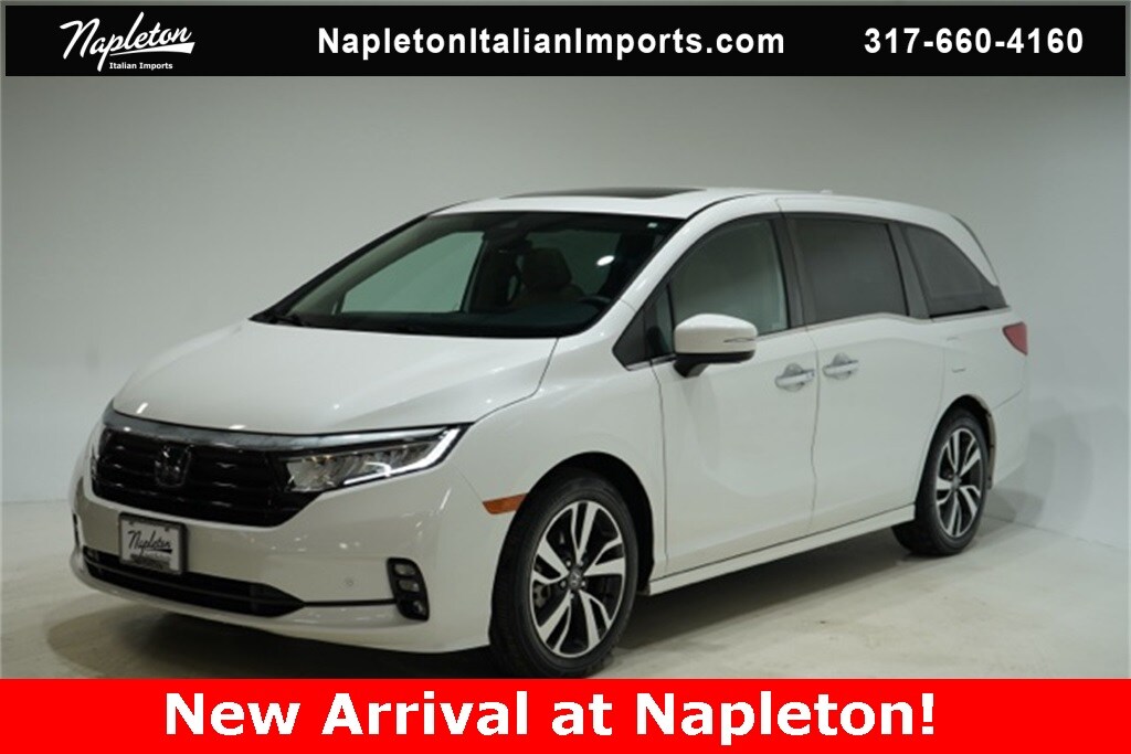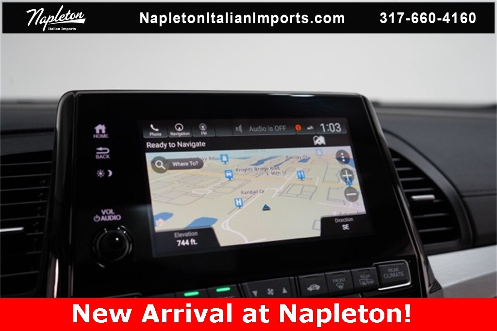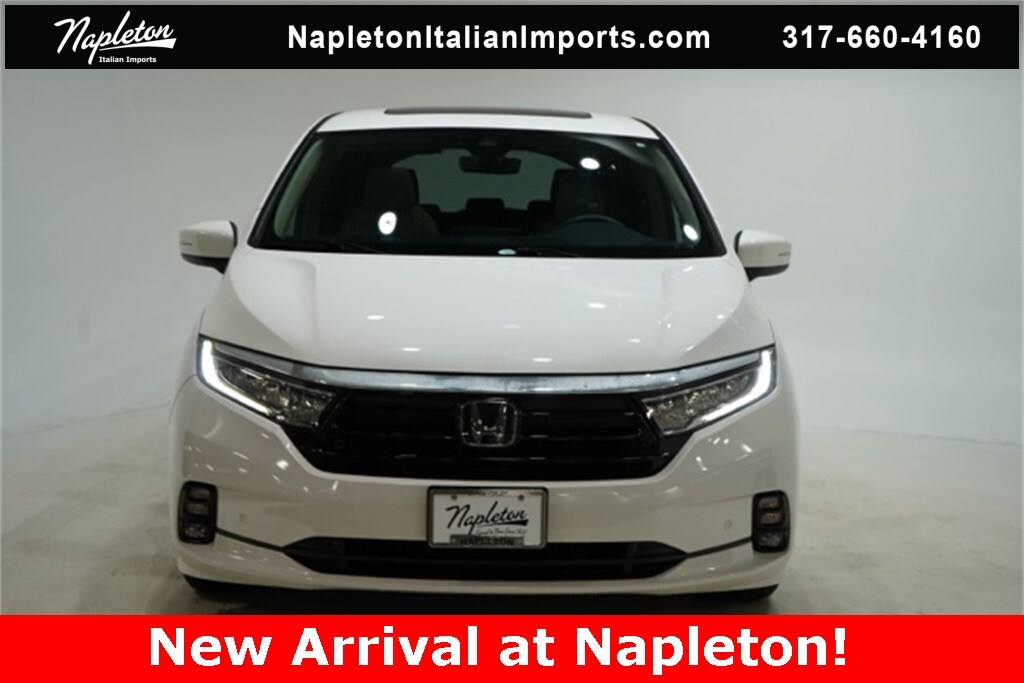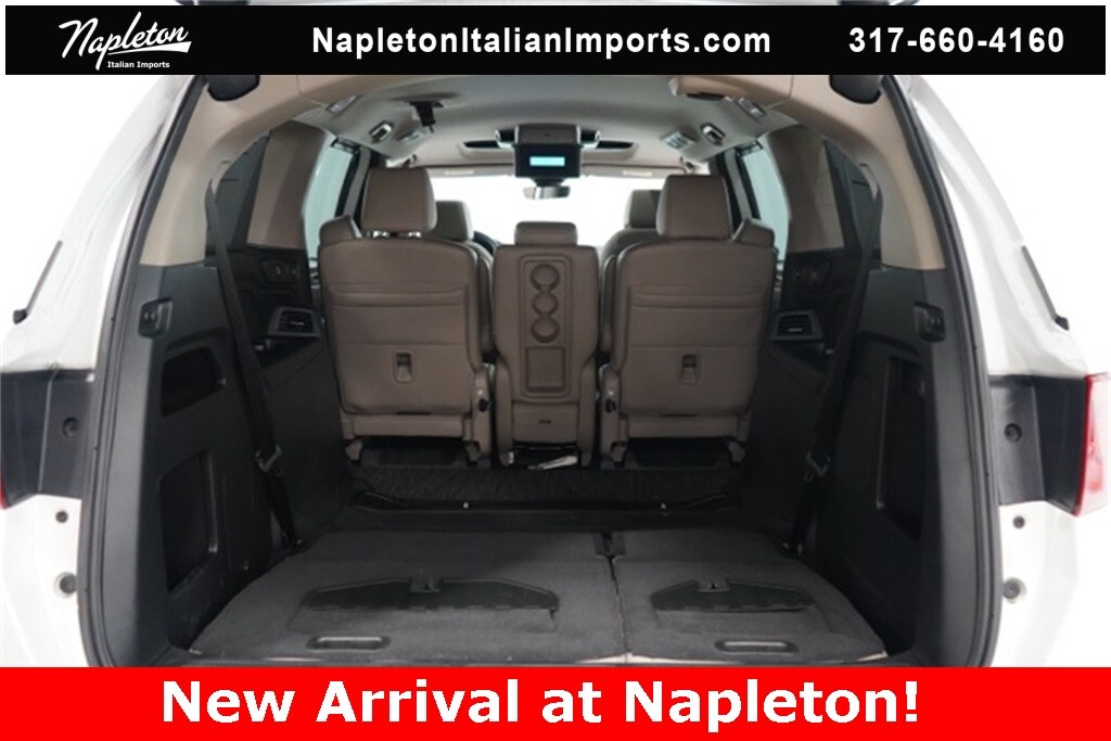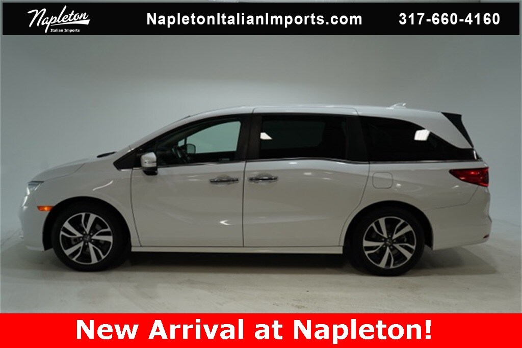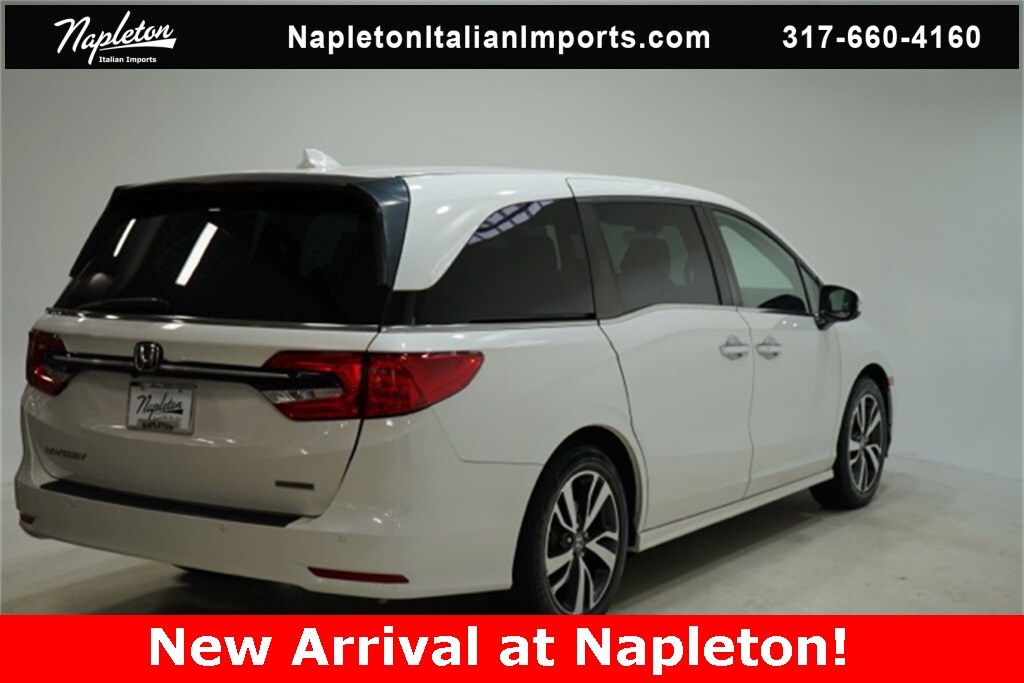 This Odyssey is well equipped with Apple CarPlay/Android Auto, Blind Spot Information (BSI) System warning, Heated front seats, Lane departure: Lane Keeping Assist System (LKAS) active, Navigation system: Honda Satellite-Linked Navigation System, Power Liftgate, Power moonroof, Reclining 3rd row seat, 3.61 Axle Ratio, 3rd row seats: split-bench, 4-Wheel Disc Brakes, 7 Speakers, A/V remote: CabinControl, ABS brakes, Adaptive Cruise Control: Adaptive Cruise Control (ACC) with Low-Speed Follow, Air Conditioning, Alloy wheels, AM/FM radio: SiriusXM, Anti-whiplash front head restraints, Auto High-beam Headlights, Auto-dimming Rear-View mirror, Automatic temperature control, Brake assist, Bumpers: body-color, CD player, Compass, Delay-off headlights, Driver door bin, Driver vanity mirror, Driver's Seat Mounted Armrest, Dual front impact airbags, Dual front side impact airbags, DVD-Audio, Electronic Stability Control, Emergency communication system: HondaLink, Exterior Parking Camera Rear, Four wheel independent suspension, Front anti-roll bar, Front Bucket Seats, Front dual zone A/C, Front fog lights, Front reading lights, Fully automatic headlights, Garage door transmitter: HomeLink, Headphones, Heated door mirrors, Heated Front Bucket Seats, Illuminated entry, Knee airbag, Leather Seat Trim, Leather steering wheel, Low tire pressure warning, Memory seat, Occupant sensing airbag, Outside temperature display, Overhead airbag, Overhead console, Panic alarm, Passenger door bin, Passenger seat mounted armrest, Passenger vanity mirror, Power door mirrors, Power driver seat, Power passenger seat, Power steering, Power windows, Radio data system, Radio: 160-Watt AM/FM/HD/SiriusXM Audio System, Rear air conditioning, Rear anti-roll bar, Rear audio controls, Rear reading lights, Rear seat center armrest, Rear window defroster, Rear window wiper, Remote keyless entry, Security system, Speed control, Speed-sensing steering, Speed-Sensitive Wipers, Split folding rear seat, Spoiler, Steering wheel mounted audio controls, Tachometer, Telescoping steering wheel, Tilt steering wheel, Traction control, Trip computer, Turn signal indicator mirrors, Variably intermittent wipers, and Wheels: 19" Machine-Finished Alloy.