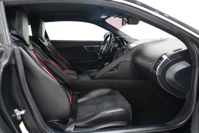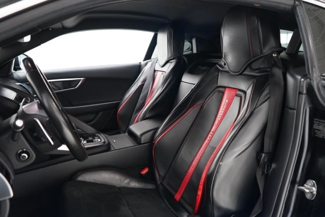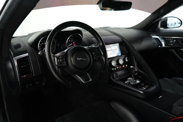 This F-TYPE is well equipped with 10 Speakers, 4-Wheel Disc Brakes, ABS brakes, Air Conditioning, Alloy wheels, AM/FM radio, Auto tilt-away steering wheel, Auto-dimming Rear-View mirror, Automatic temperature control, Block heater, Brake assist, Bumpers: body-color, Delay-off headlights, Driver door bin, Driver vanity mirror, Dual front impact airbags, Dual front side impact airbags, DVD-Audio, Electronic Stability Control, Emergency communication system: InControl Protect, Exterior Parking Camera Rear, Four wheel independent suspension, Front anti-roll bar, Front Bucket Seats, Front Center Armrest, Front reading lights, Fully automatic headlights, Grained Leather & Suedecloth Seating Surfaces, Headlight cleaning, Heated door mirrors, Illuminated entry, Leather Shift Knob, Low tire pressure warning, Memory seat, Navigation System, Occupant sensing airbag, Outside temperature display, Overhead console, Panic alarm, Passenger door bin, Passenger vanity mirror, Power door mirrors, Power driver seat, Power passenger seat, Power steering, Power windows, Radio data system, Radio: Meridian 380W Audio System, Rain sensing wipers, Rear anti-roll bar, Rear fog lights, Rear Parking Sensors, Rear window defroster, Remote CD player, Remote keyless entry, Security system, Speed control, Speed-sensing steering, Spoiler, Sport 12-Way Electric Front Seats w/Memory, Steering wheel memory, Steering wheel mounted audio controls, Tachometer, Telescoping steering wheel, Tilt steering wheel, Traction control, Trip computer, Turn signal indicator mirrors, Variably intermittent wipers, and Wheels: 18" 10 Spoke Style 1036.