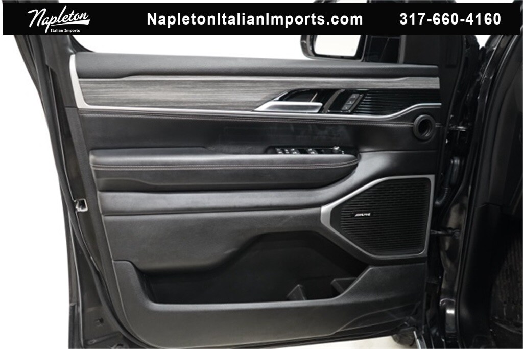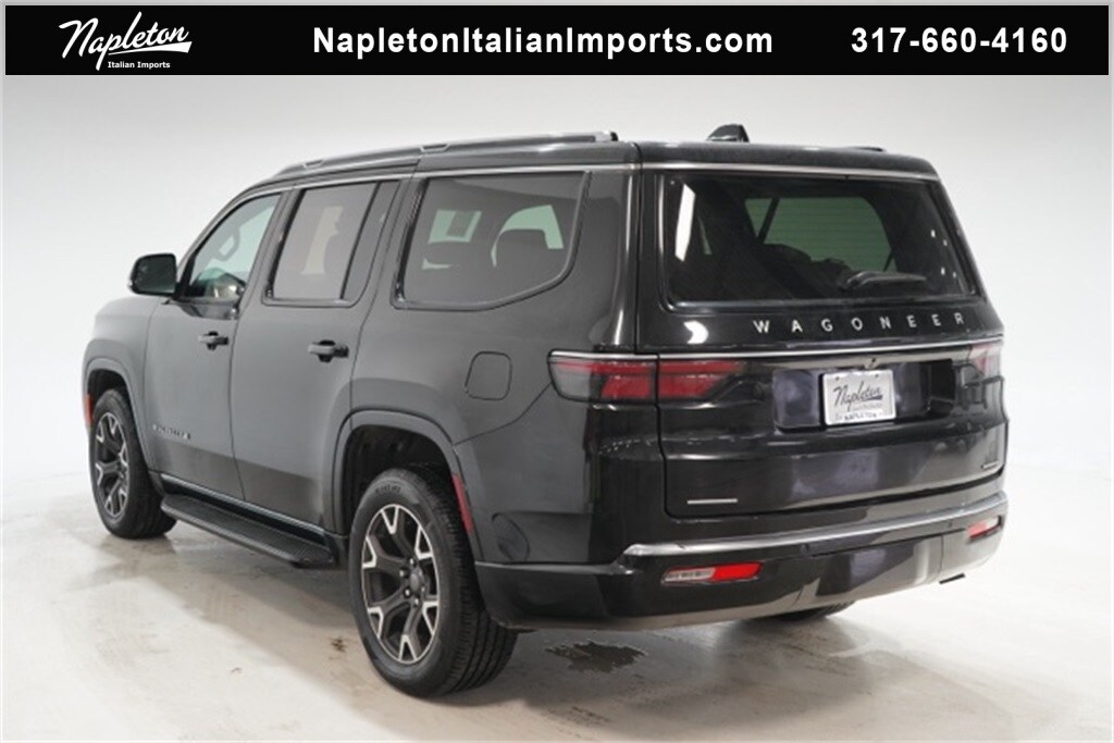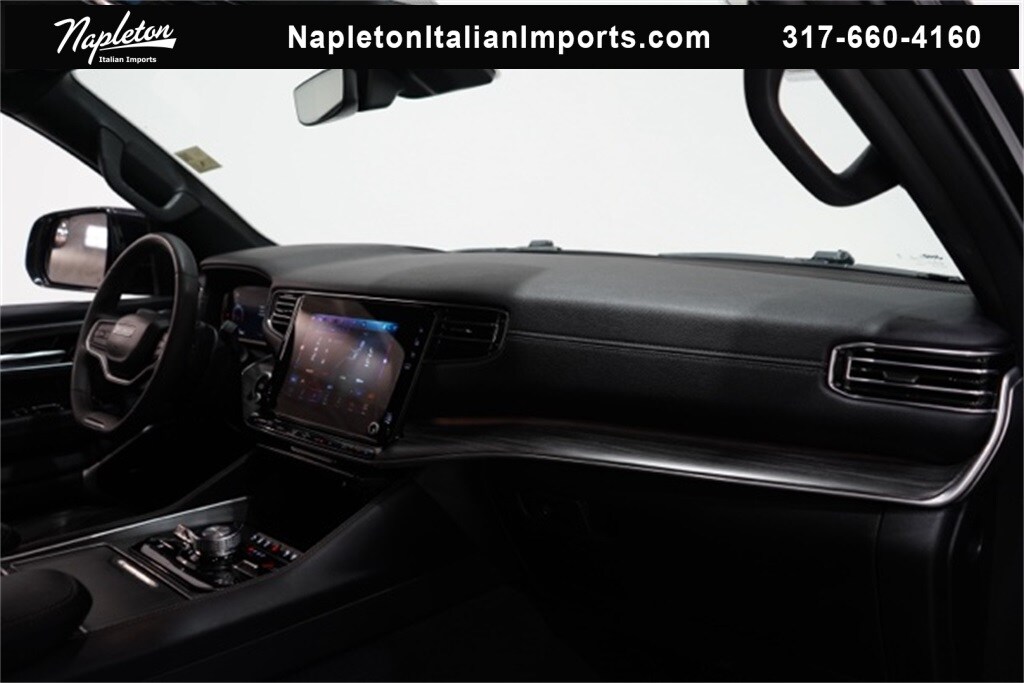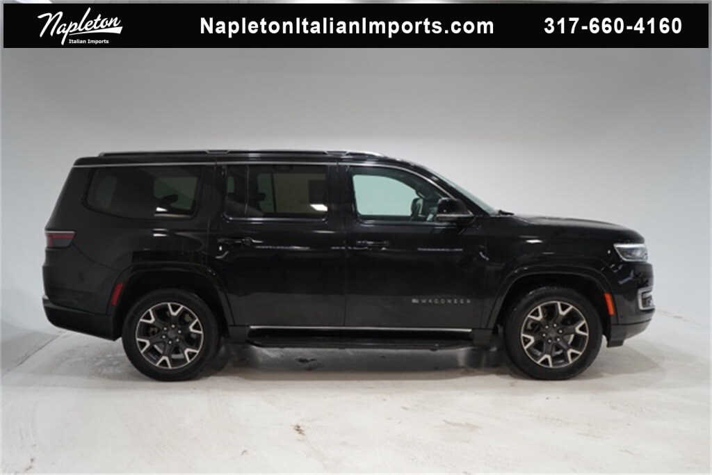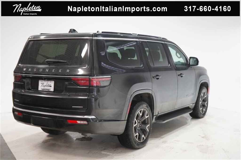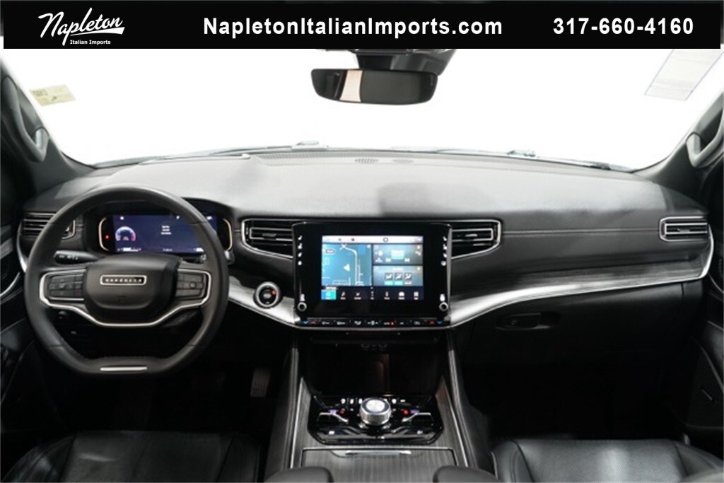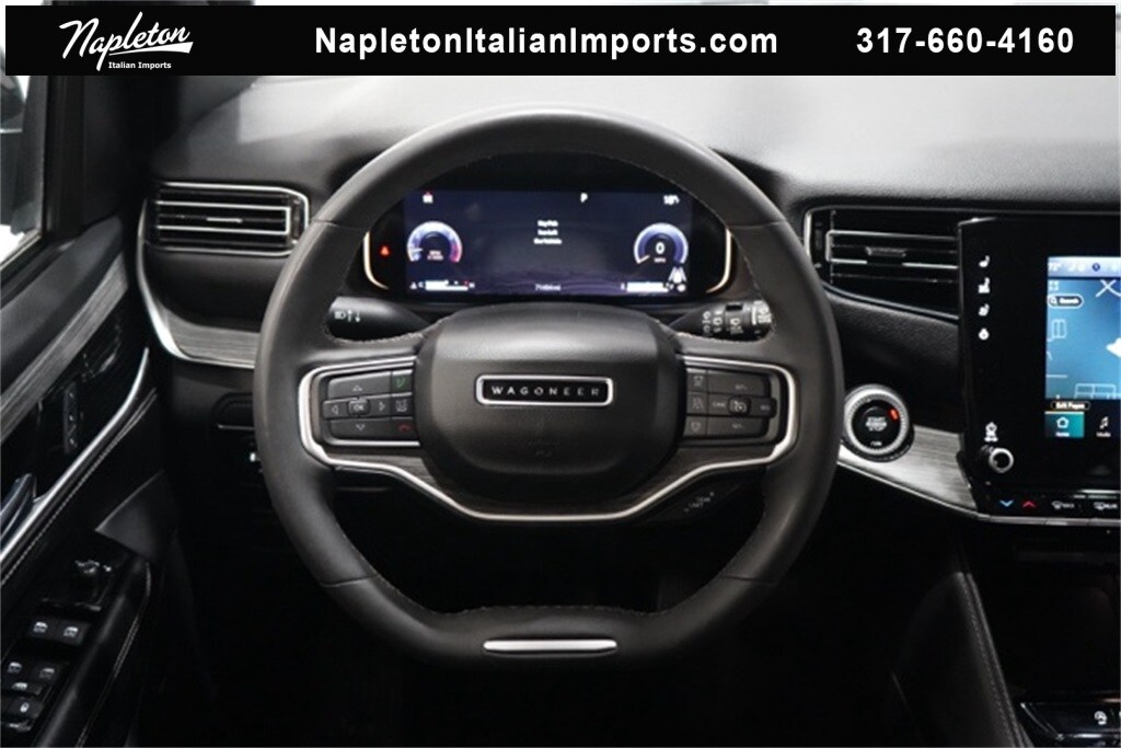 This Wagoneer is well equipped with Preferred Equipment Group (60/40 Power Recline 3rd Row Seat, Heads-Up Display, Quadra-Lift Air Suspension, and Semi Active Damping), Quick Order Package 25N, Heated front seats, Heated rear seats, Heated steering wheel, Power Liftgate, Radio: Uconnect 5 Nav w/10.1" Display, Ventilated front seats, 10 Speakers, 20" x 9.0" Aluminum Wheels, 3.55 Rear Axle Ratio, 3rd row seats: bench, 4-Wheel Disc Brakes, ABS brakes, Adjustable pedals, Air Conditioning, Alloy wheels, AM/FM radio: SiriusXM with 360L, Anti-whiplash front head restraints, Audio memory, Auto High-beam Headlights, Auto-dimming door mirrors, Auto-dimming Rear-View mirror, Auto-leveling suspension, Automatic temperature control, Brake assist, Bumpers: body-color, Compass, Delay-off headlights, Driver door bin, Driver vanity mirror, Driver's Seat Mounted Armrest, Dual front impact airbags, Dual front side impact airbags, Electronic Stability Control, Emergency communication system: Automatic SOS Call, Exterior Parking Camera Rear, Four wheel independent suspension, Front anti-roll bar, Front Bucket Seats, Front Center Armrest w/Storage, Front dual zone A/C, Front fog lights, Front reading lights, Fully automatic headlights, Garage door transmitter, Genuine wood console insert, Genuine wood dashboard insert, Genuine wood door panel insert, Heated door mirrors, Illuminated entry, Knee airbag, Leather Trimmed Bucket Seats, Low tire pressure warning, Memory seat, Navigation System, Normal Duty Suspension, Occupant sensing airbag, Outside temperature display, Overhead airbag, Overhead console, Panic alarm, Passenger door bin, Passenger seat mounted armrest, Passenger vanity mirror, Pedal memory, Power adjustable front head restraints, Power door mirrors, Power driver seat, Power passenger seat, Power steering, Power windows, Radio data system, Rain sensing wipers, Rear air conditioning, Rear anti-roll bar, Rear dual zone A/C, Rear reading lights, Rear seat center armrest, Rear window defroster, Rear window wiper, Reclining 3rd row seat, Remote keyless entry, Security system, Speed control, Speed-sensing steering, Speed-Sensitive Wipers, Split folding rear seat, Steering wheel memory, Steering wheel mounted audio controls, Tachometer, Telescoping steering wheel, Tilt steering wheel, Traction control, Trip computer, Turn signal indicator mirrors, Variably intermittent wipers, and Voltmeter.