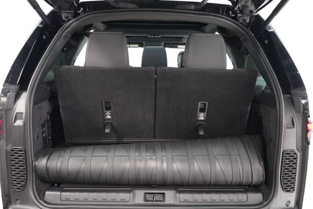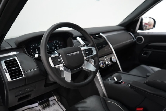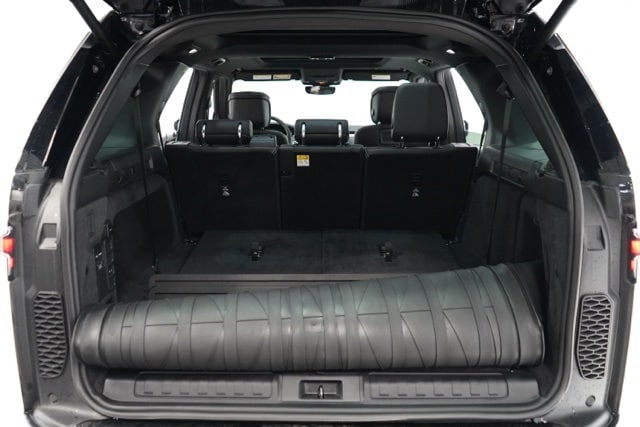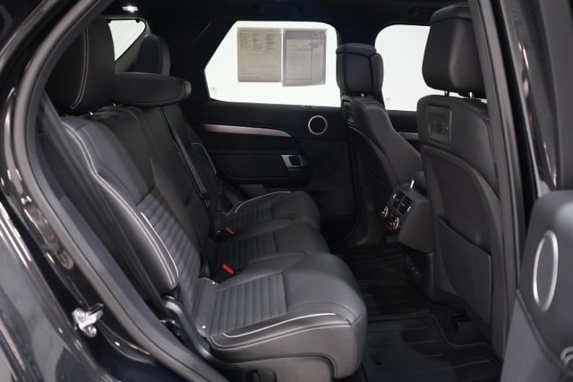 This Discovery is well equipped with Cold Climate Pack (60:40 Heated Electric Folding Rear Seats, Heated Washer Jets, Headlight Power Wash, and Heated Windscreen), 18-Way Heated Electric Front Seats, 3rd row seats: split-bench, Apple CarPlay & Android Auto, Navigation system: Connected Navigation PIVI Pro, Power Liftgate, Power moonroof, Radio: Meridian Sound System, Wheels: 21" Gloss Black, 13 Speakers, 3.55 Axle Ratio, 4-Wheel Disc Brakes, ABS brakes, Air Conditioning, Alloy wheels, AM/FM radio: SiriusXM, Auto High-beam Headlights, Auto tilt-away steering wheel, Auto-dimming door mirrors, Auto-dimming Rear-View mirror, Auto-leveling suspension, Automatic temperature control, Brake assist, Bumpers: body-color, Compass, Delay-off headlights, Driver door bin, Driver vanity mirror, Driver's Seat Mounted Armrest, Dual front impact airbags, Dual front side impact airbags, DuoLeather Seat Trim, Electronic Stability Control, Emergency communication system, Exterior Parking Camera Rear, Four wheel independent suspension, Front anti-roll bar, Front Bucket Seats, Front Center Armrest, Front dual zone A/C, Front reading lights, Fully automatic headlights, Garage door transmitter: HomeLink, Heated door mirrors, Heated front seats, Heated steering wheel, Illuminated entry, Leather Shift Knob, Low tire pressure warning, Memory seat, Occupant sensing airbag, Outside temperature display, Overhead airbag, Overhead console, Panic alarm, Passenger door bin, Passenger seat mounted armrest, Passenger vanity mirror, Power adjustable front head restraints, Power door mirrors, Power driver seat, Power passenger seat, Power steering, Power windows, Radio data system, Rain sensing wipers, Rear air conditioning, Rear anti-roll bar, Rear fog lights, Rear reading lights, Rear seat center armrest, Rear window defroster, Rear window wiper, Remote keyless entry, Security system, Speed control, Speed-sensing steering, Speed-Sensitive Wipers, Split folding rear seat, Spoiler, Steering wheel memory, Steering wheel mounted audio controls, Tachometer, Telescoping steering wheel, Tilt steering wheel, Traction control, Trip computer, Turn signal indicator mirrors, Variably intermittent wipers, and Weather band radio.