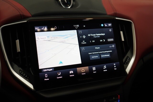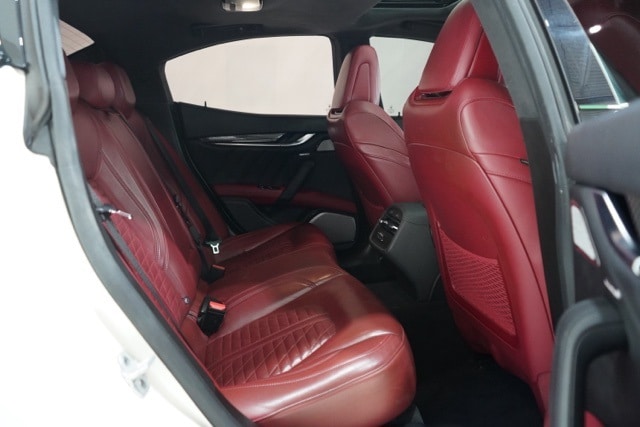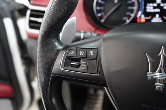 This Ghibli is well equipped with Apple CarPlay/Android Auto, harmon/kardon 900 Watts Premium Audio System, Heated front seats, Navigation System, Pieno Fiore Natural Leather Upholstery, Power moonroof, Trofeo Logo Stitched in Front & Rear Headrests, Ventilated Front Seats, Wheels: 21" Orione Forged Polished Black, 10 Speakers, 12-Way Power Heated Front Sport Seats, 4-Wheel Disc Brakes, ABS brakes, Adaptive suspension, Air Conditioning, Alloy wheels, Aluminum Column-Mounted Paddle Shifters, AM/FM radio: SiriusXM, Anti-whiplash front head restraints, Auto High-beam Headlights, Auto-dimming door mirrors, Auto-dimming Rear-View mirror, Automatic temperature control, Brake assist, Bumpers: body-color, Compass, Delay-off headlights, Door auto-latch, Driver door bin, Driver vanity mirror, Dual front impact airbags, Dual front side impact airbags, Electronic Stability Control, Emergency communication system: Maserati Connect, Exterior Parking Camera Rear, Four wheel independent suspension, Front anti-roll bar, Front Bucket Seats, Front Center Armrest w/Storage, Front dual zone A/C, Front reading lights, Garage door transmitter: HomeLink, harman/kardon® Speakers, Heated door mirrors, Heated steering wheel, Illuminated entry, Knee airbag, Leather Shift Knob, Leather steering wheel, Low tire pressure warning, Memory seat, Occupant sensing airbag, Outside temperature display, Overhead airbag, Overhead console, Panic alarm, Passenger door bin, Passenger vanity mirror, Power door mirrors, Power driver seat, Power passenger seat, Power steering, Power windows, Radio data system, Radio: AM/FM w/Maserati Intelligent Assistant, Rain sensing wipers, Rear anti-roll bar, Rear fog lights, Rear reading lights, Rear seat center armrest, Rear window defroster, Remote keyless entry, Security system, Speed control, Speed-sensing steering, Speed-Sensitive Wipers, Split folding rear seat, Sport steering wheel, Steering wheel memory, Steering wheel mounted audio controls, Tachometer, Telescoping steering wheel, Tilt steering wheel, Traction control, Trip computer, Turn signal indicator mirrors, Variably intermittent wipers, Ventilated front seats, and Voltmeter.