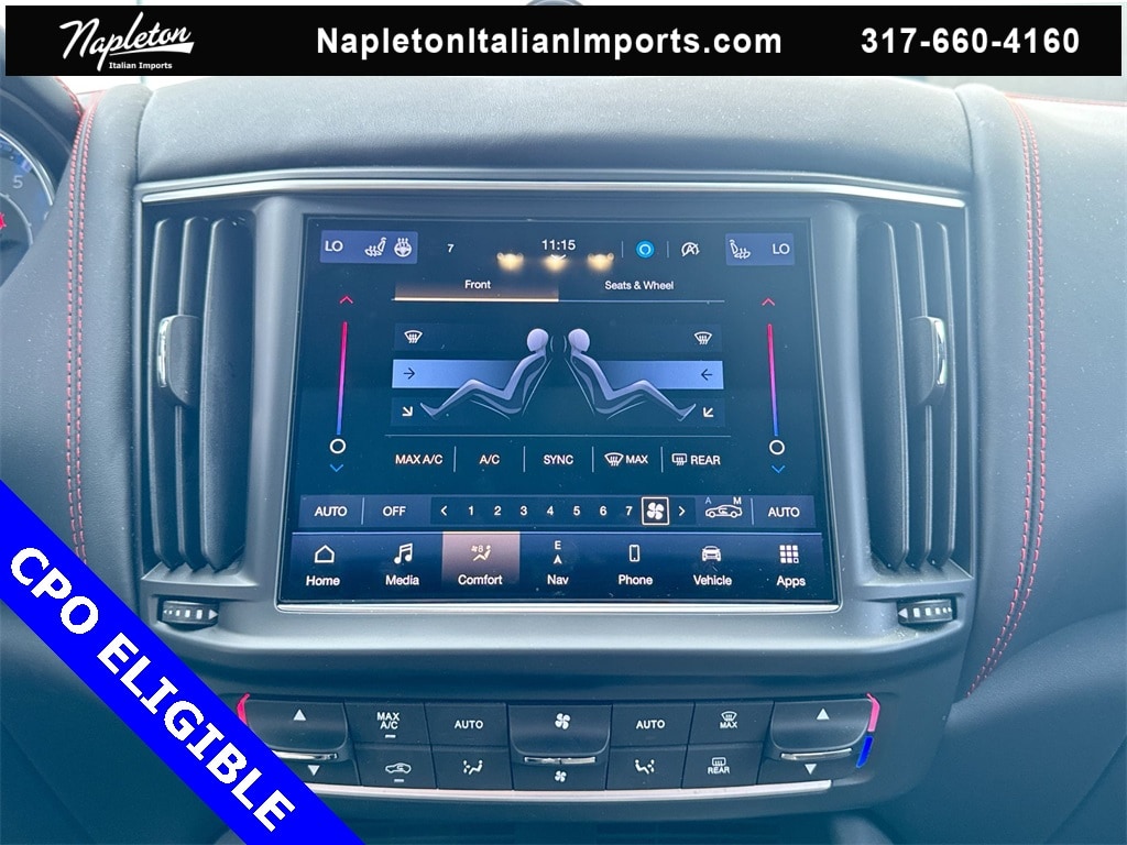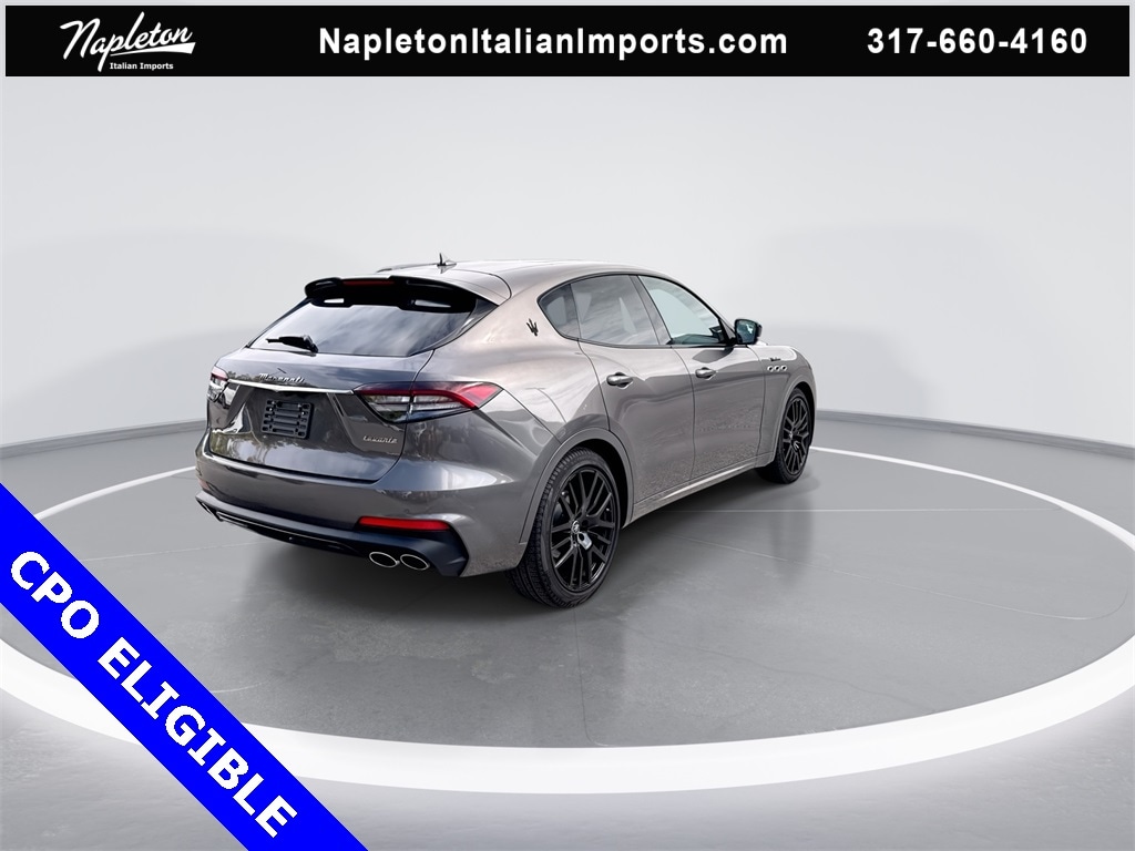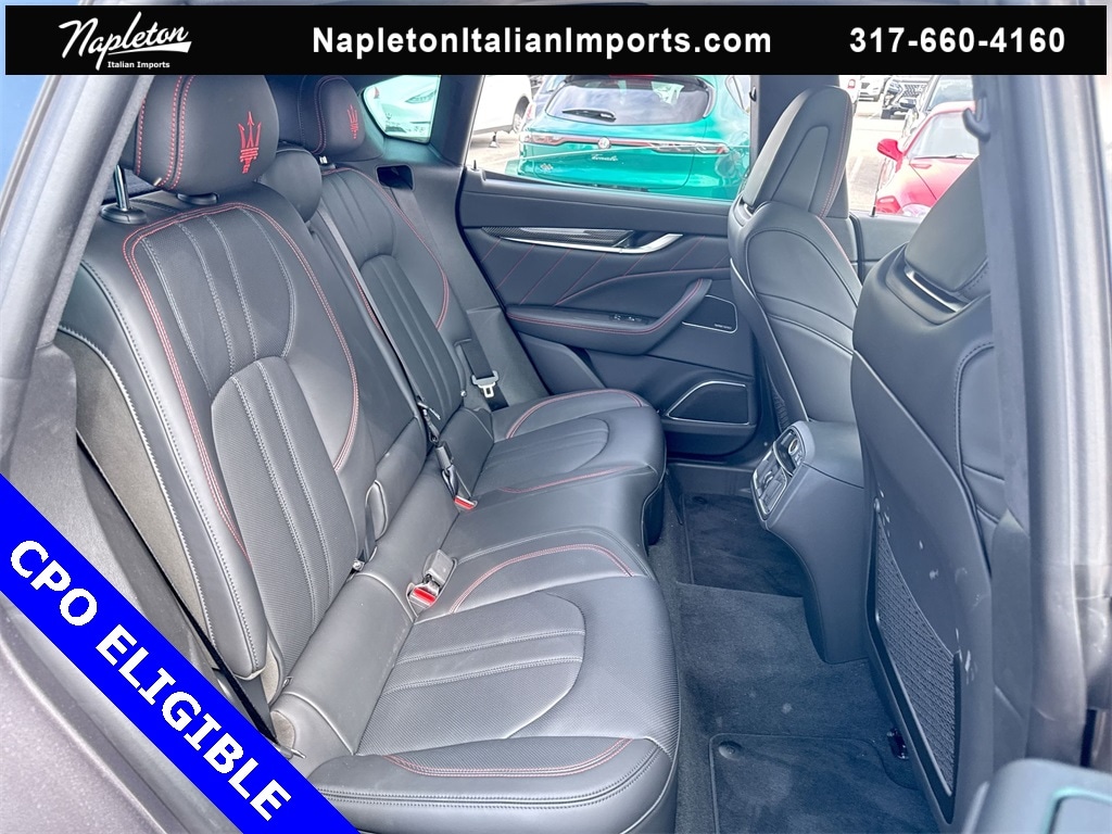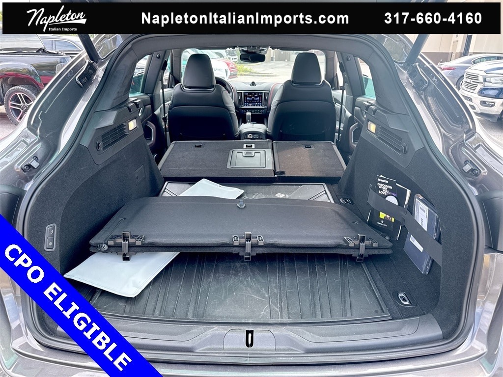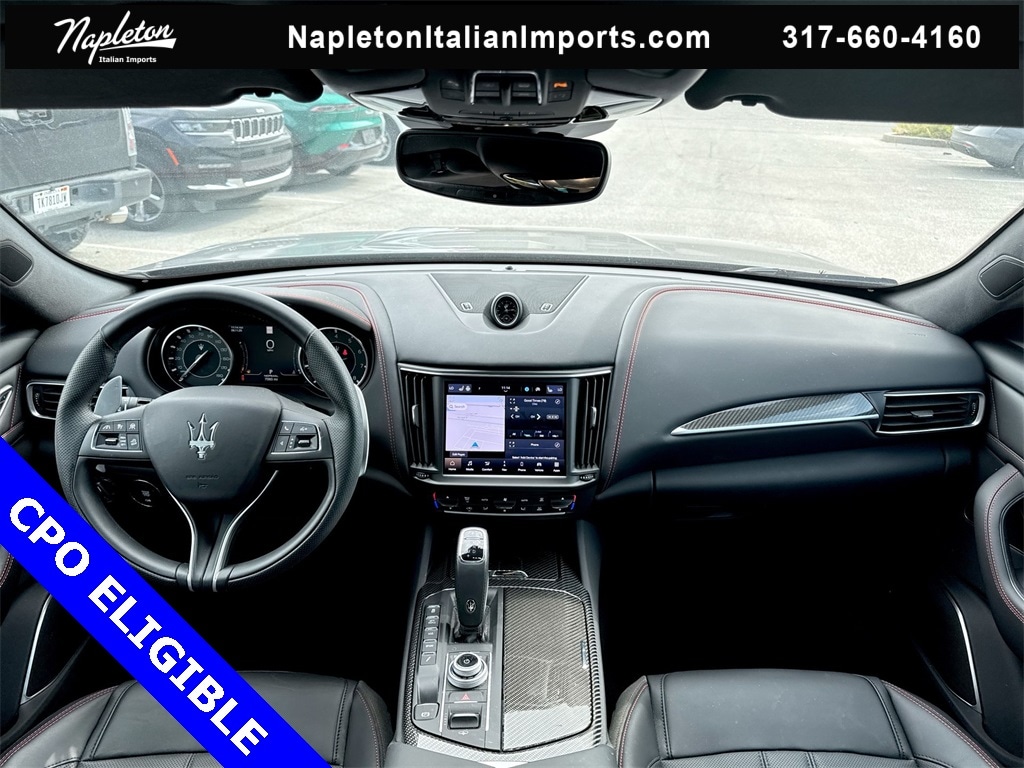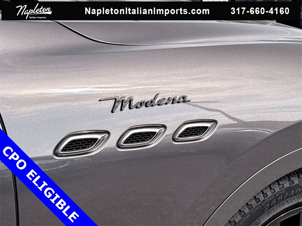 Certified Pre-Owned Eligible 2024 Levante Modena Grigio Maratea with Nero interior and Rosso Contrast stitching. Final build with the Ferrari built 3.0L Twin Turbo V6 Engine with 430hp, Original MSRP $120,685 Options: Nerissimo Pack GT - Rear Light With Dark Finish, Black Window Surround, Door Handles In Body Color, High Gloss Carbon Fiber Trim, Black Brake Calipers, 8-Speed ZF Automatic Transmission with Manual Mode, Q4 Intelligent All-Wheel Drive, Active Air Suspension, Skyhook Performance Suspension with Electronic Damping, Limited-Slip Differential (LSD), Electric Power Steering (EPS), Sport Mode, Off Road Mode, I.C.E. (Increased Control & Efficiency) Mode, Engine Start/Stop System, 21-inch Black Staggered Anteo Wheels with All-Season Tires, 18-inch Spare Tire, Dual Cast Braking System Front: 15in; Rear: 13in, Gloss Red Painted Brake Calipers with Maserati Script, Sport Fascia with Gloss Black Finish, Body Color Sport Spoiler, Dual-Pane Panoramic Power Sunroof, Premium Leather Upholstery, Piano Black Composite Trim, Trident Logo Stitched on Front & Rear Headrests, 12-Way Power Sport Front Seats with Driver Memory, Heated & Ventilated Front Seats, 60/40 Folding Heated Rear Seat, Power Adjustable Heated Black Leather Sport Steering Wheel, Aluminum Column-Mounted Paddle Shifters, 7-inch Driver Information Display, Autodimming Door & Rear View Mirrors, Front & Rear Laminated Glass, Dual-Zone Automatic Climate Control with Air Quality Sensor, HomeLink Garage Door Opener, Power Rear Side Sunblinds & Soft Close Doors, Hands-Free Power Tailgate (Kick to Open), Keyless Entry and Remote Start, 8.4-inch Maserati Intelligent Assistant, Navigation / Apple CarPlay / Android Auto, SiriusXM with 360L, Maserati Connected Services, Alexa Built-In - See Maserati.com for details, Harman Kardon Premium Audio (14-Speakers), Airbag System (Dual Stage Front, Side & Head), Front & Rear Parking Sensors