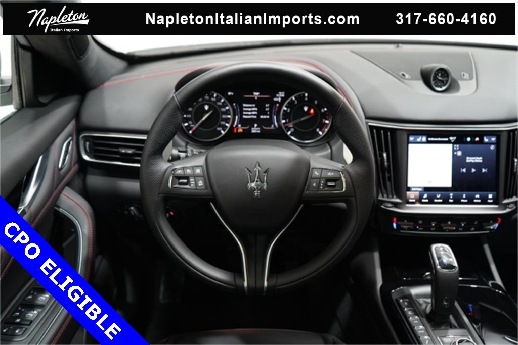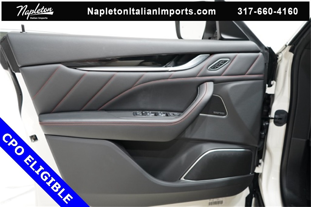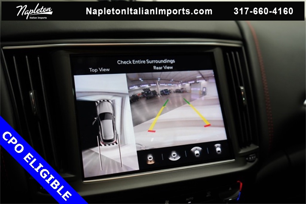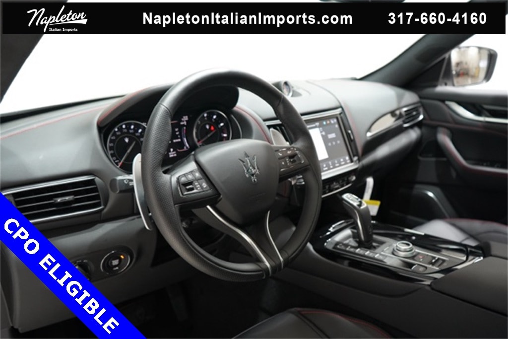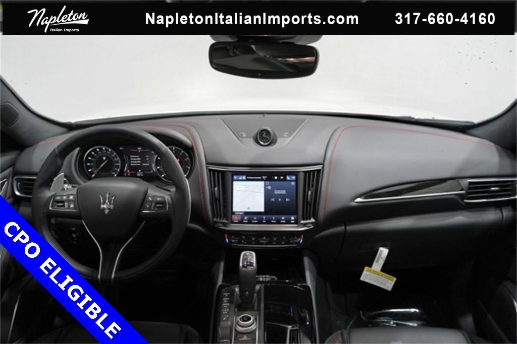 This Levante is well equipped with 12-Way Heated & Ventilated Power Front Sport Seats, 14 Speakers, 20" Wheels, 3.27 Axle Ratio, 4-Wheel Disc Brakes, ABS brakes, Adaptive suspension, Air Conditioning, Alloy wheels, AM/FM radio: SiriusXM, Anti-whiplash front head restraints, Apple CarPlay/Android Auto, Auto High-beam Headlights, Auto-dimming door mirrors, Auto-dimming Rear-View mirror, Auto-leveling suspension, Automatic temperature control, Brake assist, Bumpers: body-color, Compass, Delay-off headlights, Door auto-latch, Driver door bin, Driver vanity mirror, Dual front impact airbags, Dual front side impact airbags, Electronic Stability Control, Emergency communication system: Maserati Connect, Exterior Parking Camera Rear, Four wheel independent suspension, Front anti-roll bar, Front Bucket Seats, Front Center Armrest, Front dual zone A/C, Front fog lights, Front reading lights, Full Premium Perforated Leather Upholstery, Garage door transmitter: HomeLink, harman/kardon 900W Premium Audio System, harman/kardon® Speakers, Heated door mirrors, Heated front seats, Heated rear seats, Heated steering wheel, High intensity discharge headlights: Bi-Xenon, Illuminated entry, Leather Shift Knob, Leather steering wheel, Low tire pressure warning, Memory seat, Navigation System, Occupant sensing airbag, Outside temperature display, Overhead airbag, Overhead console, Passenger door bin, Passenger vanity mirror, Power door mirrors, Power driver seat, Power Liftgate, Power moonroof, Power passenger seat, Power steering, Power windows, Radio data system, Radio: AM/FM w/Maserati Intelligent Assistant, Rear anti-roll bar, Rear fog lights, Rear reading lights, Rear seat center armrest, Rear window defroster, Rear window wiper, Remote keyless entry, Security system, Speed control, Speed-sensing steering, Speed-Sensitive Wipers, Split folding rear seat, Sport steering wheel, Steering wheel memory, Steering wheel mounted audio controls, Tachometer, Telescoping steering wheel, Tilt steering wheel, Traction control, Trip computer, Turn signal indicator mirrors, Variably intermittent wipers, Ventilated front seats, Voltmeter, and Wheels: 20" Dark Grey Efesto Miron Staggered.