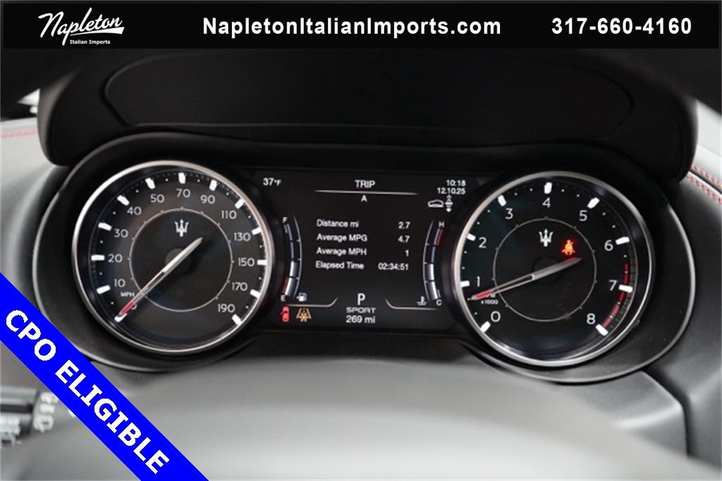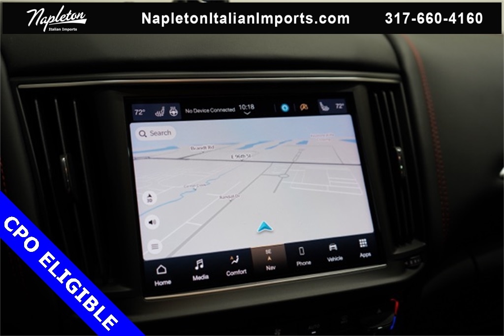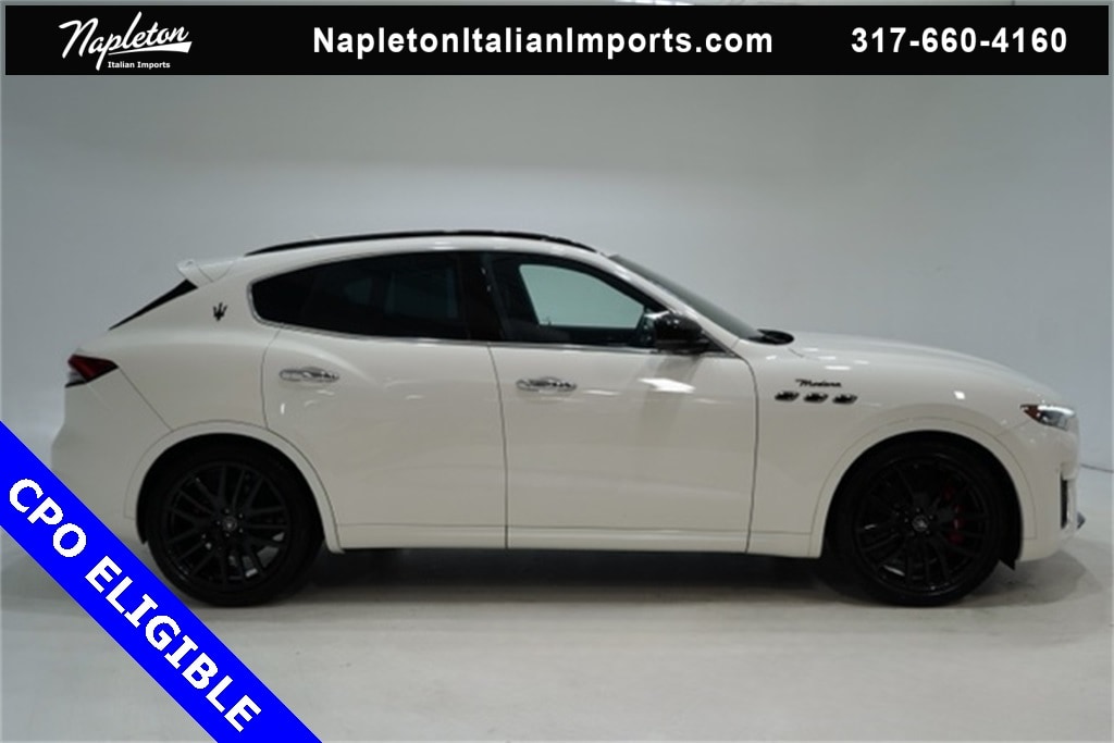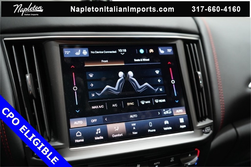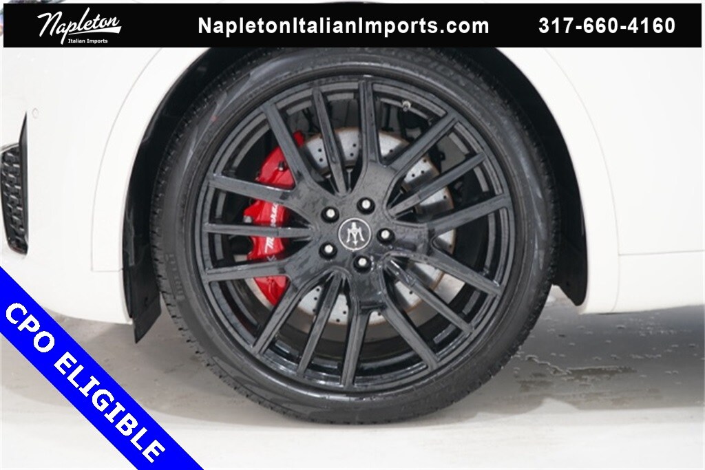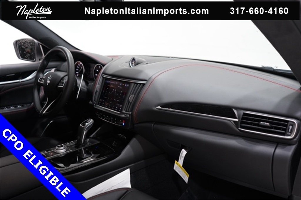 This Levante is well equipped with 12-Way Heated & Ventilated Power Front Sport Seats, 14 Speakers, 20" Wheels, 3.27 Axle Ratio, 4-Wheel Disc Brakes, ABS brakes, Adaptive suspension, Air Conditioning, Alloy wheels, AM/FM radio: SiriusXM, Anti-whiplash front head restraints, Apple CarPlay/Android Auto, Auto High-beam Headlights, Auto-dimming door mirrors, Auto-dimming Rear-View mirror, Auto-leveling suspension, Automatic temperature control, Brake assist, Bumpers: body-color, Compass, Delay-off headlights, Door auto-latch, Driver door bin, Driver vanity mirror, Dual front impact airbags, Dual front side impact airbags, Electronic Stability Control, Emergency communication system: Maserati Connect, Exterior Parking Camera Rear, Four wheel independent suspension, Front anti-roll bar, Front Bucket Seats, Front Center Armrest, Front dual zone A/C, Front fog lights, Front reading lights, Full Premium Perforated Leather Upholstery, Garage door transmitter: HomeLink, harman/kardon 900W Premium Audio System, harman/kardon® Speakers, Heated door mirrors, Heated front seats, Heated rear seats, Heated steering wheel, High intensity discharge headlights: Bi-Xenon, Illuminated entry, Leather Shift Knob, Leather steering wheel, Low tire pressure warning, Memory seat, Navigation System, Occupant sensing airbag, Outside temperature display, Overhead airbag, Overhead console, Passenger door bin, Passenger vanity mirror, Power door mirrors, Power driver seat, Power Liftgate, Power moonroof, Power passenger seat, Power steering, Power windows, Radio data system, Radio: AM/FM w/Maserati Intelligent Assistant, Rear anti-roll bar, Rear fog lights, Rear reading lights, Rear seat center armrest, Rear window defroster, Rear window wiper, Remote keyless entry, Security system, Speed control, Speed-sensing steering, Speed-Sensitive Wipers, Split folding rear seat, Sport steering wheel, Steering wheel memory, Steering wheel mounted audio controls, Tachometer, Telescoping steering wheel, Tilt steering wheel, Traction control, Trip computer, Turn signal indicator mirrors, Variably intermittent wipers, Ventilated front seats, Voltmeter, and Wheels: 20" Dark Grey Efesto Miron Staggered.