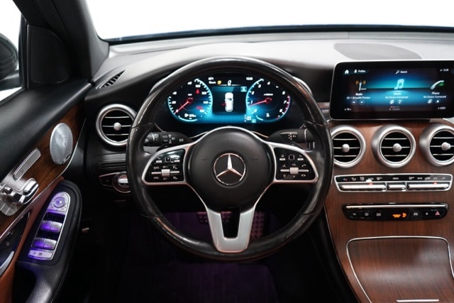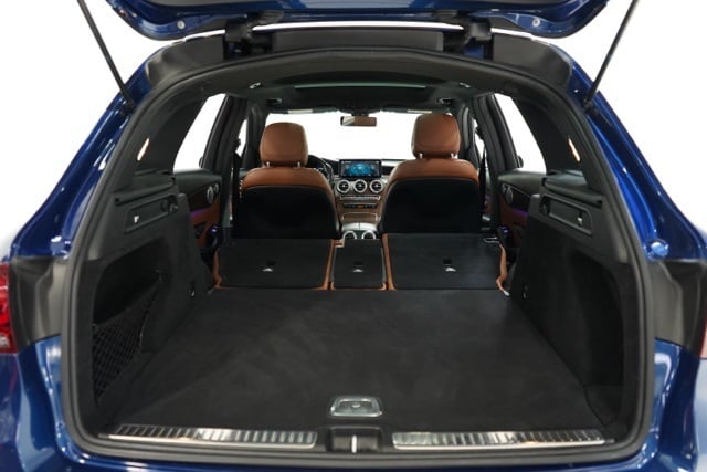 This GLC is well equipped with AMG® Line (AMG® Line Body Styling, AMG® Line Exterior, and AMG® Line Floor Mats), Night Package (Black Roof Rails and High-Gloss Black Elements), Premium Package (64-Color Ambient Lighting, Illuminated Door Sills, and SiriusXM Satellite Radio), 10.25" Center Touchscreen Display, 3.27 Axle Ratio, 4-Way Lumbar Support, 4-Wheel Disc Brakes, 6 Speakers, ABS brakes, Air Conditioning, Alloy wheels, AM/FM radio, Apple CarPlay®/Android Auto®, Auto tilt-away steering wheel, Auto-dimming door mirrors, Auto-dimming Rear-View mirror, Automatic temperature control, Brake assist, Bumpers: body-color, Child-Seat-Sensing Airbag, Delay-off headlights, Driver door bin, Driver vanity mirror, Dual front impact airbags, Dual front side impact airbags, Electronic Stability Control, Emergency communication system: eCall Emergency System, Exterior Parking Camera Rear, Four wheel independent suspension, Front anti-roll bar, Front Bucket Seats, Front Center Armrest, Front dual zone A/C, Front reading lights, Fully automatic headlights, Garage door transmitter: HomeLink, Genuine wood dashboard insert, Heated door mirrors, Heated Front Bucket Seats, Heated front seats, Illuminated entry, Knee airbag, Leather steering wheel, Low tire pressure warning, MB-Tex Upholstery, Memory seat, Occupant sensing airbag, Outside temperature display, Overhead airbag, Overhead console, Panic alarm, Passenger door bin, Passenger vanity mirror, Power door mirrors, Power driver seat, Power Front Seat w/Driver Memory, Power Liftgate, Power passenger seat, Power steering, Power windows, Radio data system, Radio: MBUX Multimedia System, Rain sensing wipers, Rear anti-roll bar, Rear fog lights, Rear reading lights, Rear seat center armrest, Rear window defroster, Rear window wiper, Remote keyless entry, Roof rack: rails only, Security system, Speed control, Speed-sensing steering, Split folding rear seat, Spoiler, Steering wheel memory, Steering wheel mounted audio controls, Tachometer, Telescoping steering wheel, Tilt steering wheel, Traction control, Trip computer, Turn signal indicator mirrors, Variably intermittent wipers, and Wheels: 8J x 18 ET 38 Split 5-Spoke.