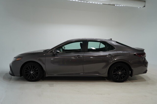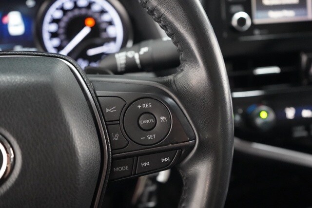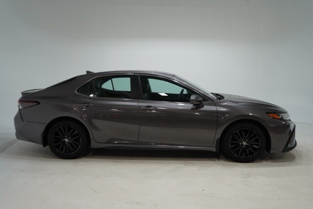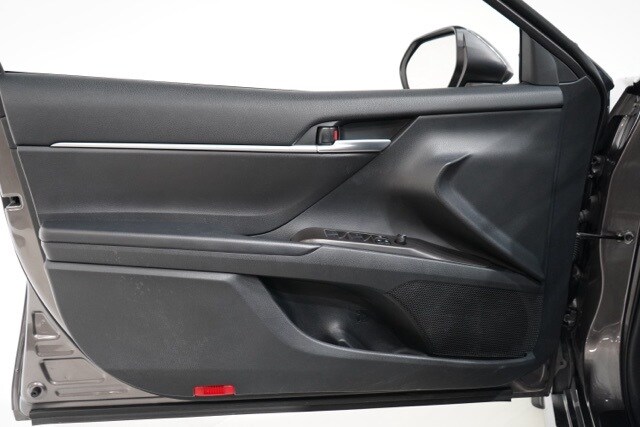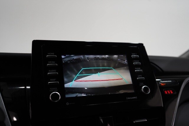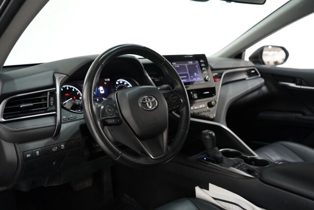 This Camry is well equipped with Black Artificial Leather, ABS brakes, Active Cruise Control, Alloy wheels, Electronic Stability Control, Front dual zone A/C, Heated door mirrors, Illuminated entry, Low tire pressure warning, Remote keyless entry, Traction control, 4-Wheel Disc Brakes, 6 Speakers, 8.0J x 18" Alloy Wheels, Air Conditioning, AM/FM radio: SiriusXM, Apple CarPlay/Android Auto, Auto High-beam Headlights, Automatic temperature control, Brake assist, Bumpers: body-color, Delay-off headlights, Driver door bin, Driver vanity mirror, Dual front impact airbags, Dual front side impact airbags, Emergency communication system: Safety Connect (1-year trial), Exterior Parking Camera Rear, Four wheel independent suspension, Front anti-roll bar, Front Bucket Seats, Front Center Armrest, Front reading lights, Fully automatic headlights, Knee airbag, Leather steering wheel, Occupant sensing airbag, Outside temperature display, Overhead airbag, Overhead console, Panic alarm, Passenger door bin, Passenger vanity mirror, Power door mirrors, Power driver seat, Power steering, Power windows, Radio data system, Radio: Audio, Rear anti-roll bar, Rear seat center armrest, Rear side impact airbag, Rear window defroster, Security system, Speed control, Speed-sensing steering, Split folding rear seat, Spoiler, Sport SofTex Seat Trim w/Fabric Inserts, Steering wheel mounted audio controls, Tachometer, Telescoping steering wheel, Tilt steering wheel, Trip computer, Turn signal indicator mirrors, and Variably intermittent wipers.