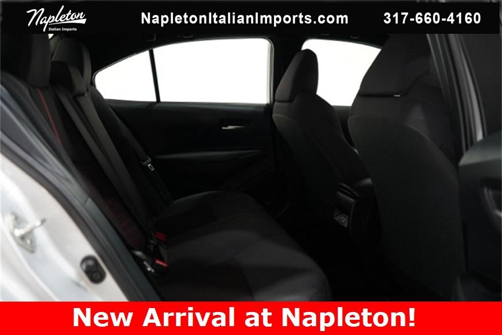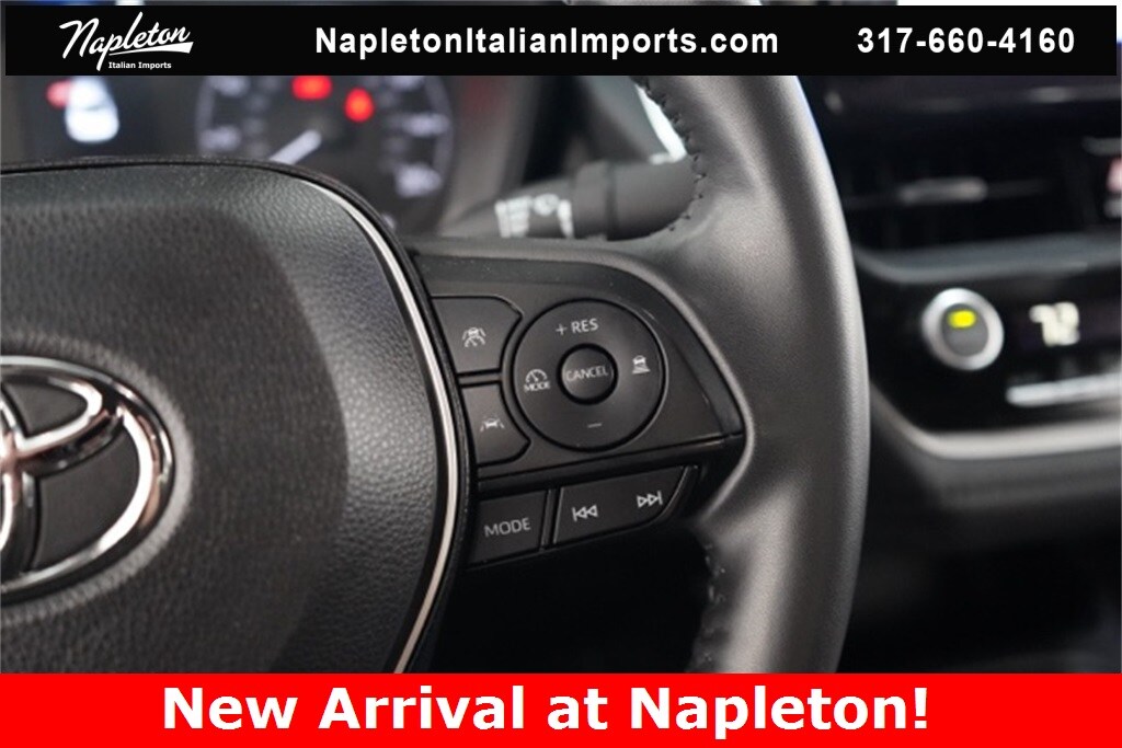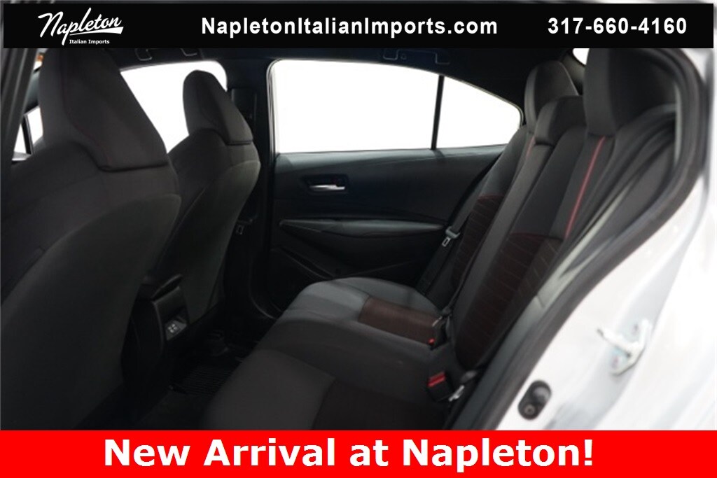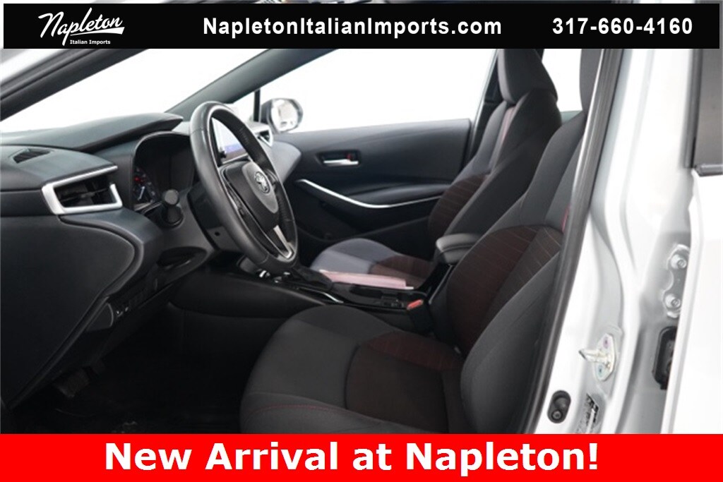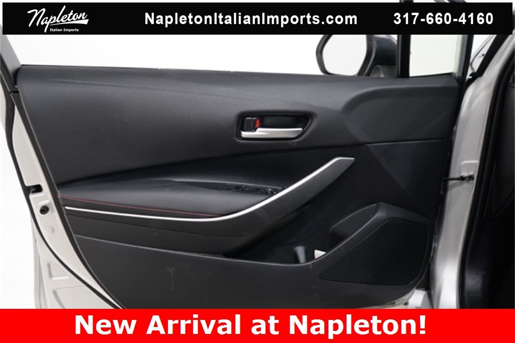 This Corolla is well equipped with Front Sport Seats, Premium Seat Trim, Radio: 8" Toyota Audio Multimedia, Wheels: 18" Alloy w/Graphite Finish, 4-Wheel Disc Brakes, 6 Speakers, ABS brakes, Air Conditioning, Alloy wheels, AM/FM radio: SiriusXM, Auto High-beam Headlights, Automatic temperature control, Brake assist, Bumpers: body-color, Delay-off headlights, Driver door bin, Driver vanity mirror, Dual front impact airbags, Dual front side impact airbags, Electronic Stability Control, Emergency communication system: Safety Connect (up to 10-year trial subscription), Exterior Parking Camera Rear, Four wheel independent suspension, Front anti-roll bar, Front Bucket Seats, Front Center Armrest, Front reading lights, Fully automatic headlights, Heated door mirrors, Illuminated entry, Knee airbag, Leather steering wheel, Low tire pressure warning, Occupant sensing airbag, Outside temperature display, Overhead airbag, Panic alarm, Passenger door bin, Passenger vanity mirror, Power door mirrors, Power steering, Power windows, Radio data system, Rear anti-roll bar, Rear seat center armrest, Rear side impact airbag, Rear window defroster, Remote keyless entry, Speed control, Split folding rear seat, Spoiler, Steering wheel mounted audio controls, Tachometer, Telescoping steering wheel, Tilt steering wheel, Traction control, Trip computer, Turn signal indicator mirrors, and Variably intermittent wipers.