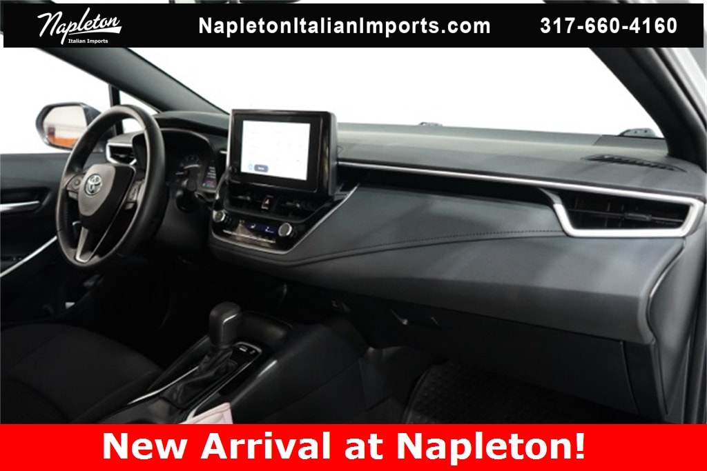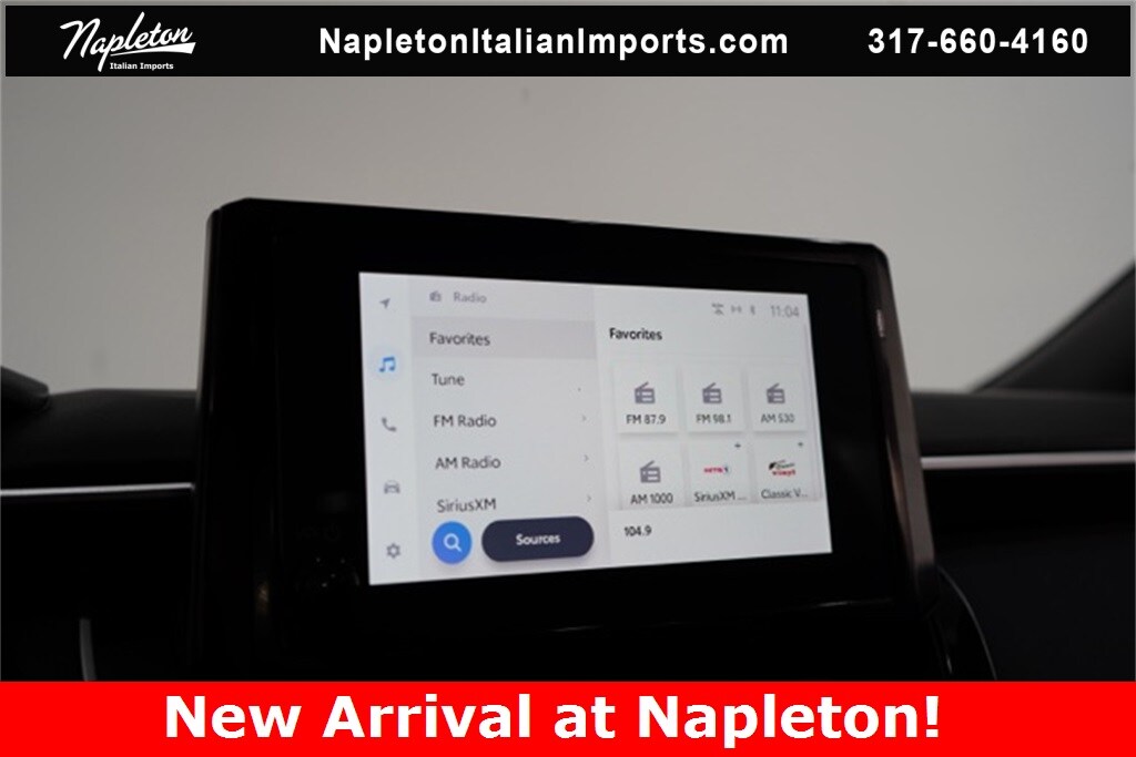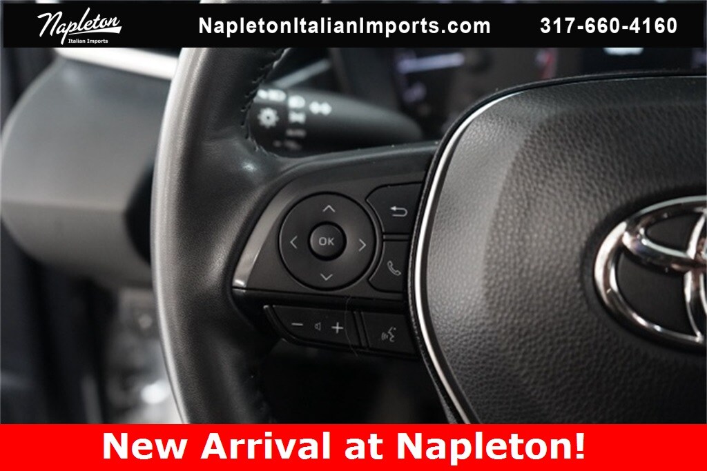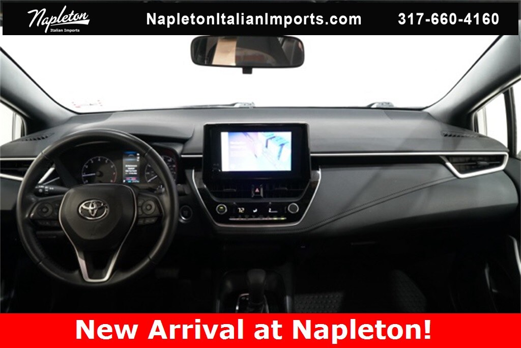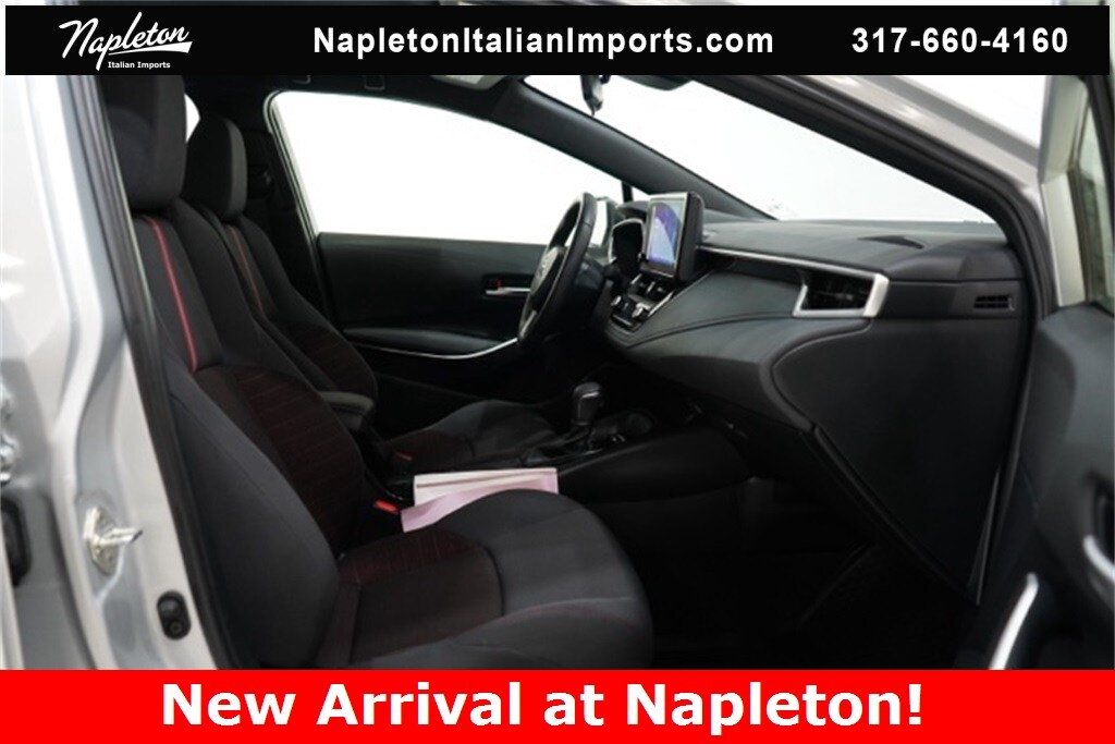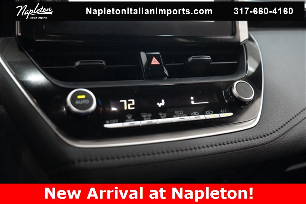 This Corolla is well equipped with Front Sport Seats, Premium Seat Trim, Radio: 8" Toyota Audio Multimedia, Wheels: 18" Alloy w/Graphite Finish, 4-Wheel Disc Brakes, 6 Speakers, ABS brakes, Air Conditioning, Alloy wheels, AM/FM radio: SiriusXM, Auto High-beam Headlights, Automatic temperature control, Brake assist, Bumpers: body-color, Delay-off headlights, Driver door bin, Driver vanity mirror, Dual front impact airbags, Dual front side impact airbags, Electronic Stability Control, Emergency communication system: Safety Connect (up to 10-year trial subscription), Exterior Parking Camera Rear, Four wheel independent suspension, Front anti-roll bar, Front Bucket Seats, Front Center Armrest, Front reading lights, Fully automatic headlights, Heated door mirrors, Illuminated entry, Knee airbag, Leather steering wheel, Low tire pressure warning, Occupant sensing airbag, Outside temperature display, Overhead airbag, Panic alarm, Passenger door bin, Passenger vanity mirror, Power door mirrors, Power steering, Power windows, Radio data system, Rear anti-roll bar, Rear seat center armrest, Rear side impact airbag, Rear window defroster, Remote keyless entry, Speed control, Split folding rear seat, Spoiler, Steering wheel mounted audio controls, Tachometer, Telescoping steering wheel, Tilt steering wheel, Traction control, Trip computer, Turn signal indicator mirrors, and Variably intermittent wipers.