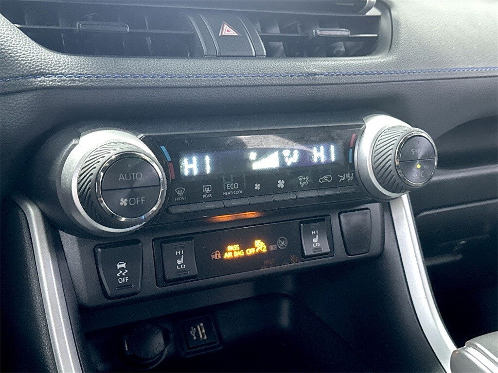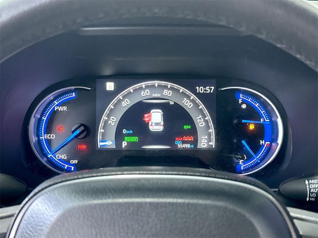 This RAV4 Hybrid is well equipped with Weather Package (Heated 3-Spoke Leather Steering Wheel and Front Seat Heating), 2.5L 4-Cylinder, Power Liftgate, 4-Wheel Disc Brakes, 6 Speakers, ABS brakes, Air Conditioning, Alloy wheels, AM/FM radio: SiriusXM, Auto High-beam Headlights, Automatic temperature control, Axle Ratio: TBD, Brake assist, Bumpers: body-color, Delay-off headlights, Driver door bin, Driver vanity mirror, Dual front impact airbags, Dual front side impact airbags, Electronic Stability Control, Emergency communication system: Safety Connect (1-year trial), Exterior Parking Camera Rear, Fabric Seat Trim, Four wheel independent suspension, Front anti-roll bar, Front Bucket Seats, Front Center Armrest, Front dual zone A/C, Front reading lights, Fully automatic headlights, Heated door mirrors, Illuminated entry, Knee airbag, Leather Shift Knob, Leather steering wheel, Low tire pressure warning, Occupant sensing airbag, Outside temperature display, Overhead airbag, Overhead console, Panic alarm, Passenger door bin, Passenger vanity mirror, Power door mirrors, Power driver seat, Power steering, Power windows, Radio data system, Radio: AM/FM/XM Audio System, Rear anti-roll bar, Rear seat center armrest, Rear window defroster, Rear window wiper, Remote keyless entry, Speed control, Speed-sensing steering, Split folding rear seat, Spoiler, Steering wheel mounted audio controls, Telescoping steering wheel, Tilt steering wheel, Traction control, Trip computer, Turn signal indicator mirrors, Variably intermittent wipers, and Wheels: 18" x 7.0J Silver Aluminum Alloy.