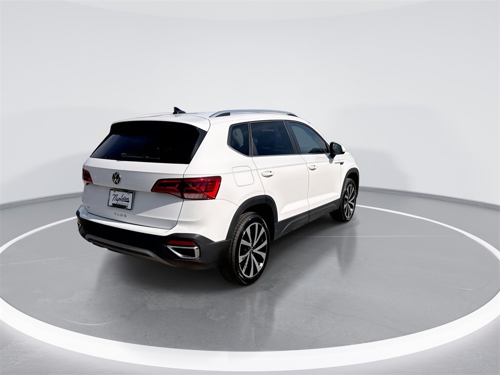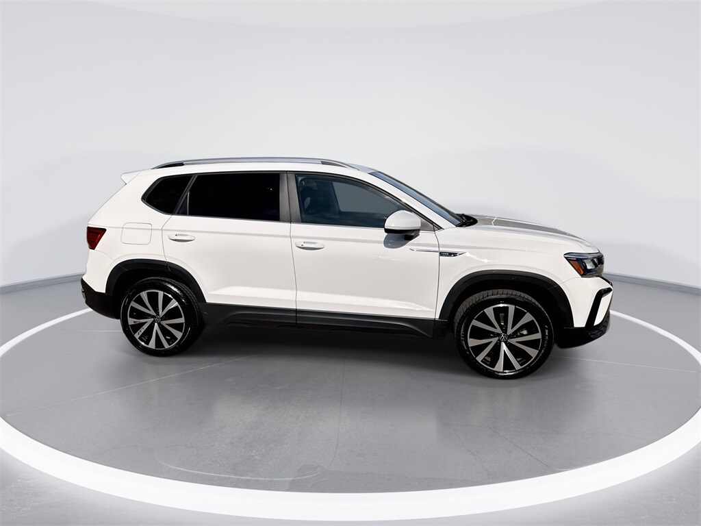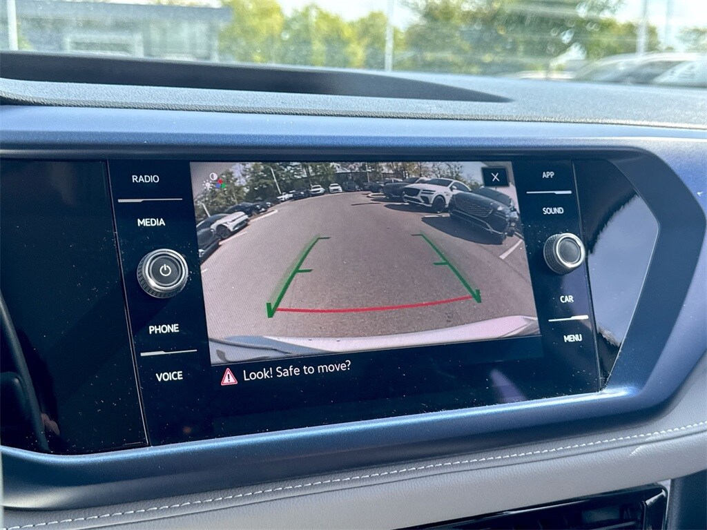 This Taos is well equipped with Active Blind Spot Monitor, Heated Front Bucket Seats, Heated steering wheel, 3.23 Axle Ratio, 4-Wheel Disc Brakes, 6 Speakers, ABS brakes, Air Conditioning, Alloy wheels, AM/FM radio: SiriusXM with 360L, Auto High-beam Headlights, Automatic temperature control, Brake assist, Bumpers: body-color, CloudTex & Cloth Seating Surfaces, Compass, Delay-off headlights, Driver door bin, Driver vanity mirror, Dual front impact airbags, Dual front side impact airbags, Electronic Stability Control, Emergency communication system: VW Car-Net Safe & Secure 5-year, Exterior Parking Camera Rear, Front anti-roll bar, Front Bucket Seats, Front Center Armrest, Front dual zone A/C, Front reading lights, Front Strut Rear Torsion Beam Suspension, Front wheel independent suspension, Fully automatic headlights, Heated door mirrors, Heated front seats, Illuminated entry, Leather Shift Knob, Low tire pressure warning, Occupant sensing airbag, Outside temperature display, Overhead airbag, Overhead console, Panic alarm, Passenger door bin, Passenger vanity mirror, Power door mirrors, Power driver seat, Power steering, Power windows, Radio data system, Radio: MIB3 Composition Media AM/FM/HD, Rain sensing wipers, Rear anti-roll bar, Rear seat center armrest, Rear window defroster, Rear window wiper, Remote keyless entry, Roof rack: rails only, Security system, Speed control, Speed-sensing steering, Split folding rear seat, Spoiler, Steering wheel mounted audio controls, Tachometer, Telescoping steering wheel, Tilt steering wheel, Traction control, Trip computer, Variably intermittent wipers, and Wheels: 18" 2-Tone Machined Alloy.